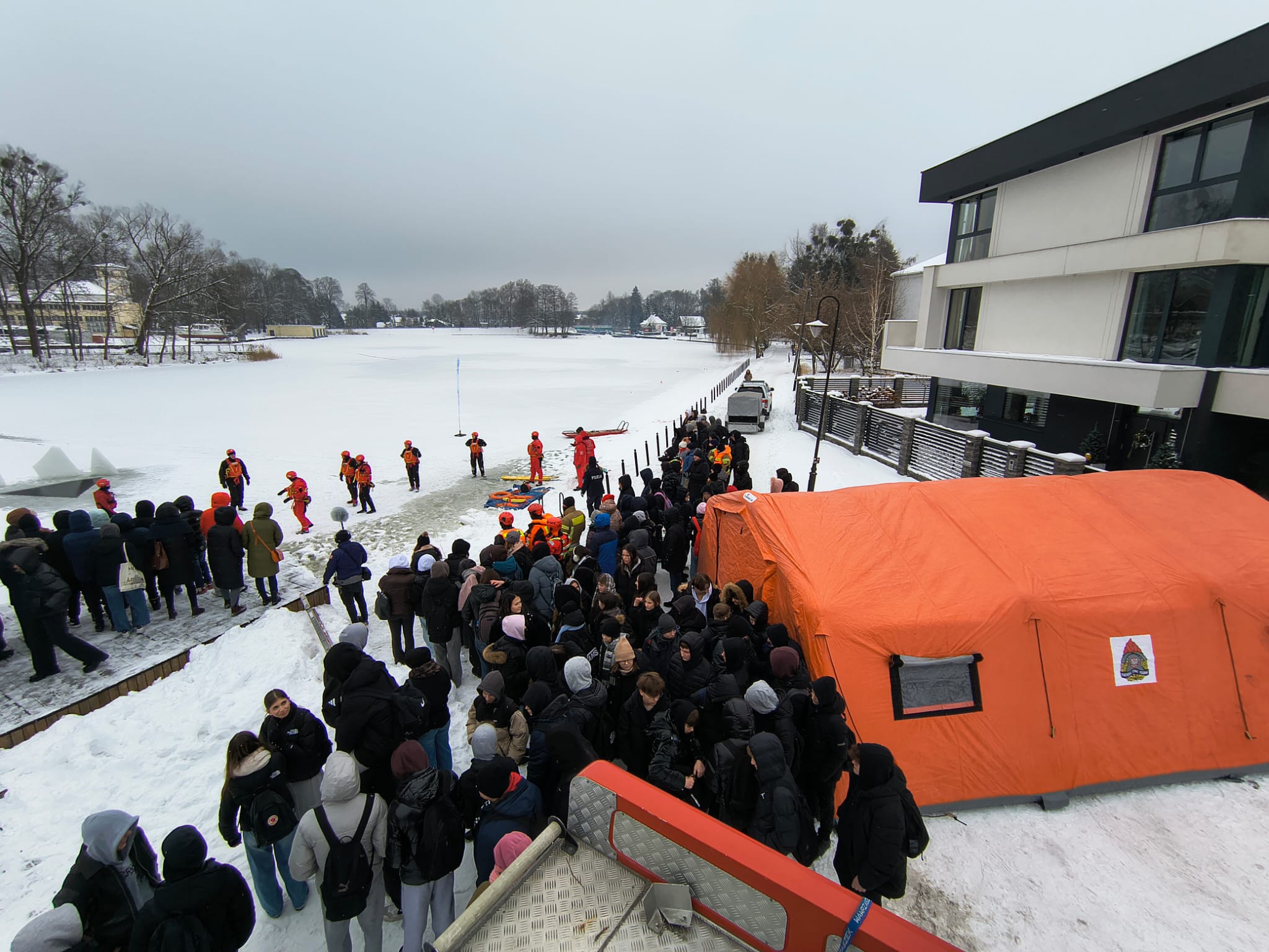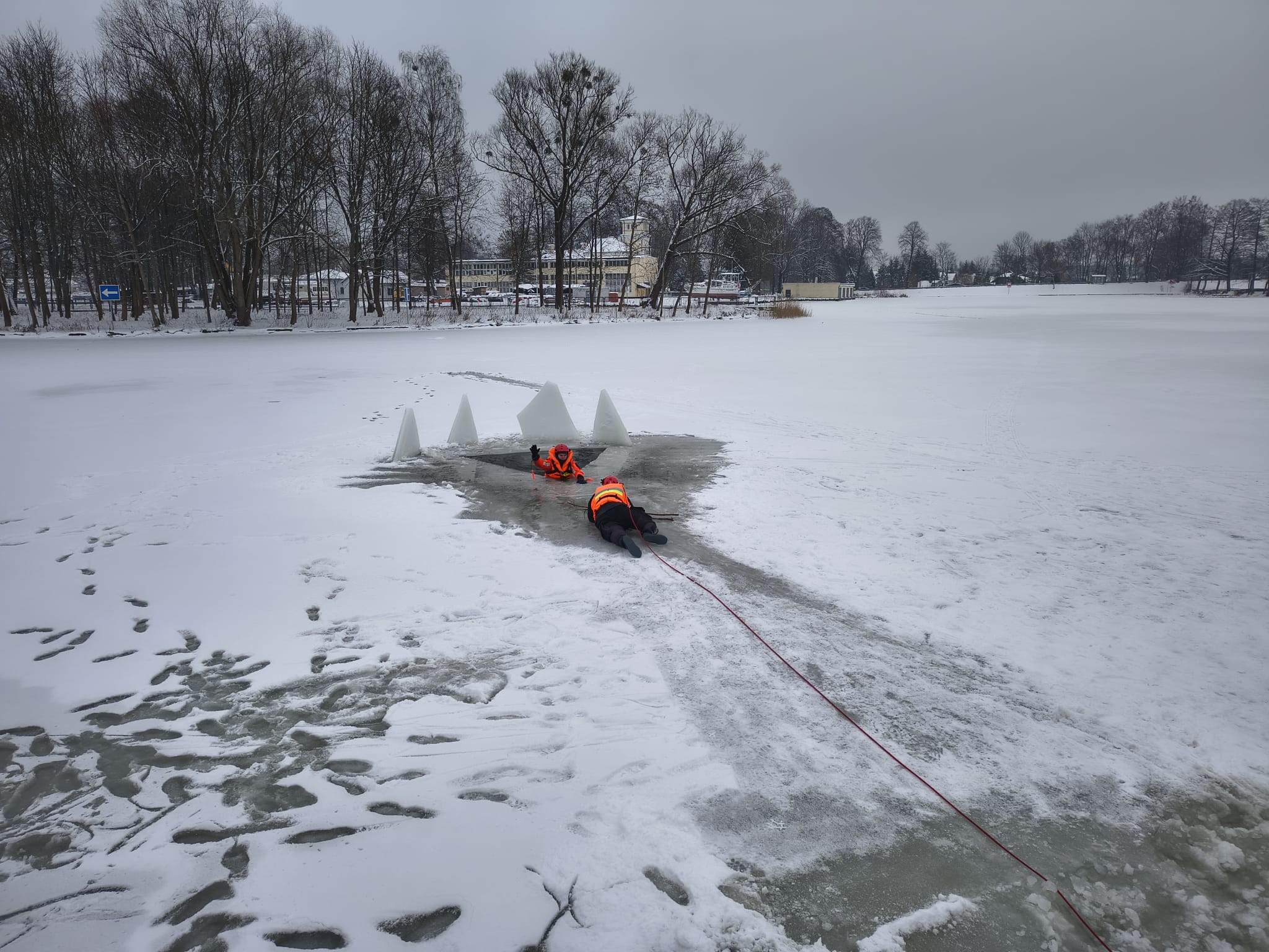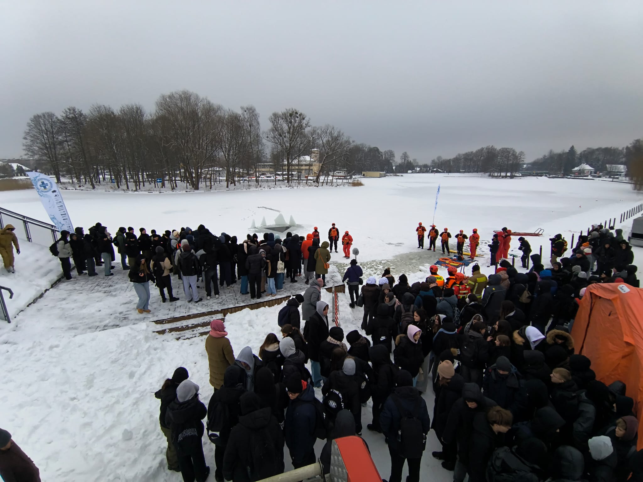 Edukacja ta miała za zadanie podniesienie poziomu bezpieczeństwa w okresie sezonu zimowego, poprzez zwrócenie uwagi na zagrożenia związane z wchodzeniem na zamarznięte sztuczne lub naturalne zbiorniki wodne. W zorganizowanych ćwiczeniach uczestniczyli funkcjonariusze z Jednostki Ratowniczo-Gaśniczej w Augustowie, w tym Specjalistycznej Grupy Ratownictwa Wodno – Nurkowego, funkcjonariusze Policji, OSP Augustów- Lipowiec oraz WOPR Augustów. Podczas pokazu poruszono tematykę zagrożeń związanych z hipotermią organizmu, zasad postępowania podczas pomocy osobom, pod którymi załamał się lód, jak również podstawowych zasad BHP przy tego rodzaju interwencjach. Przeprowadzono ćwiczenia praktyczne, w których wymienione służby prowadziły symulowane akcje ratownicze przy użyciu sprzętu będącego na wyposażeniu samochodów ratowniczych.