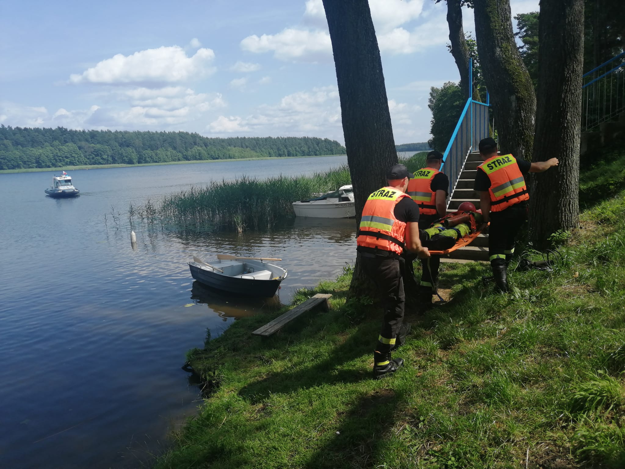 19.07.2022 r. na jeziorze Necko odbyły się wspólne ćwiczenia z ratownictwa wodnego strażaków z Jednostki Ratowniczo- Gaśniczej w Augustowie, funkcjonariuszy Komendy Powiatowej Policji w Augustowie oraz ratowników WOPR Augustów.