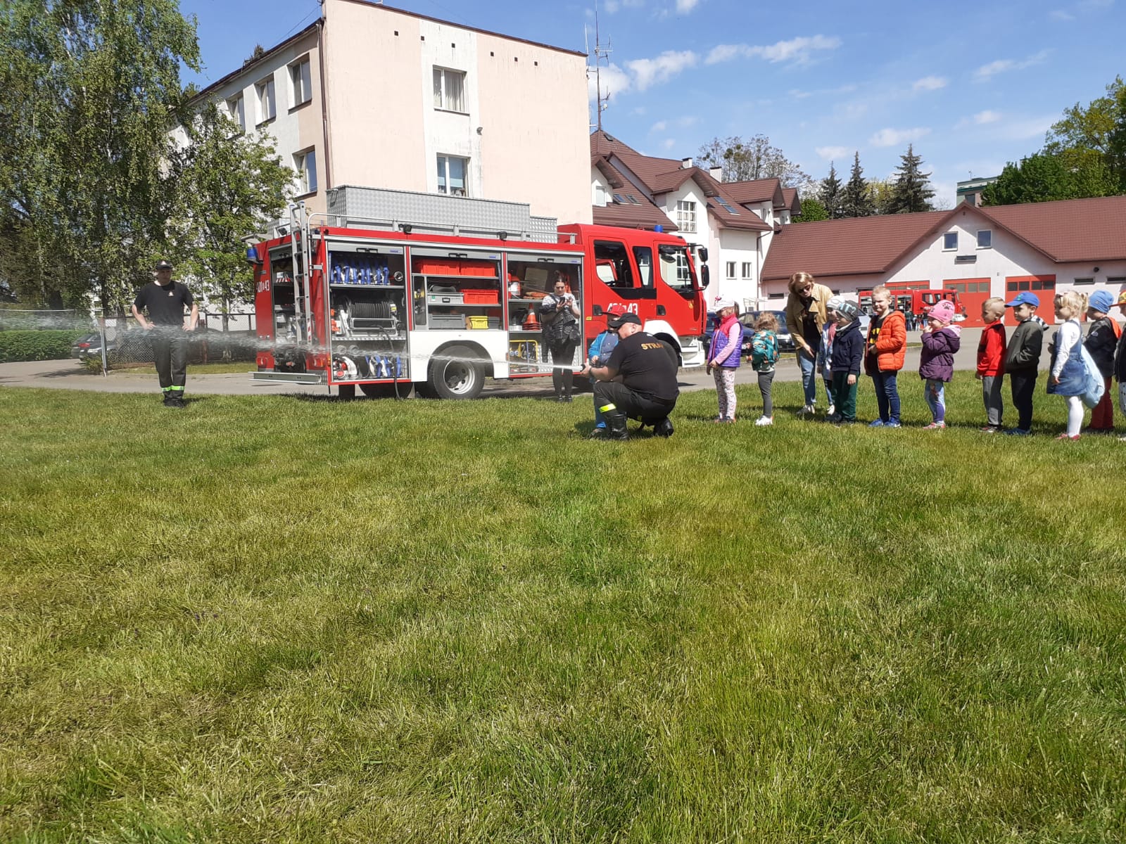 Podczas spotkań strażacy zaprezentowali sprzęt ratowniczy, ubrania specjalne oraz sprzęt ochrony osobistej. Dzieci podczas wizyt w naszej komendzie miały możliwość zajęcia miejsca w kabinie samochodu pożarniczego a także „poczucia się” strażakiem podając prąd wody z samochodu pożarniczego pod nadzorem funkcjonariuszy.