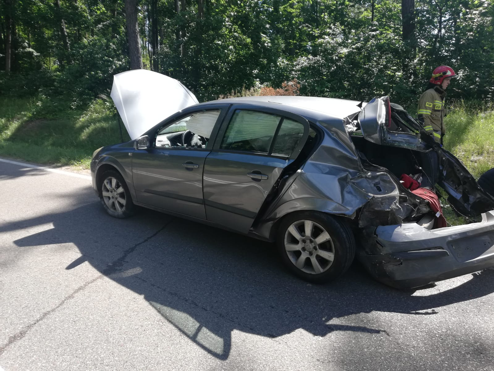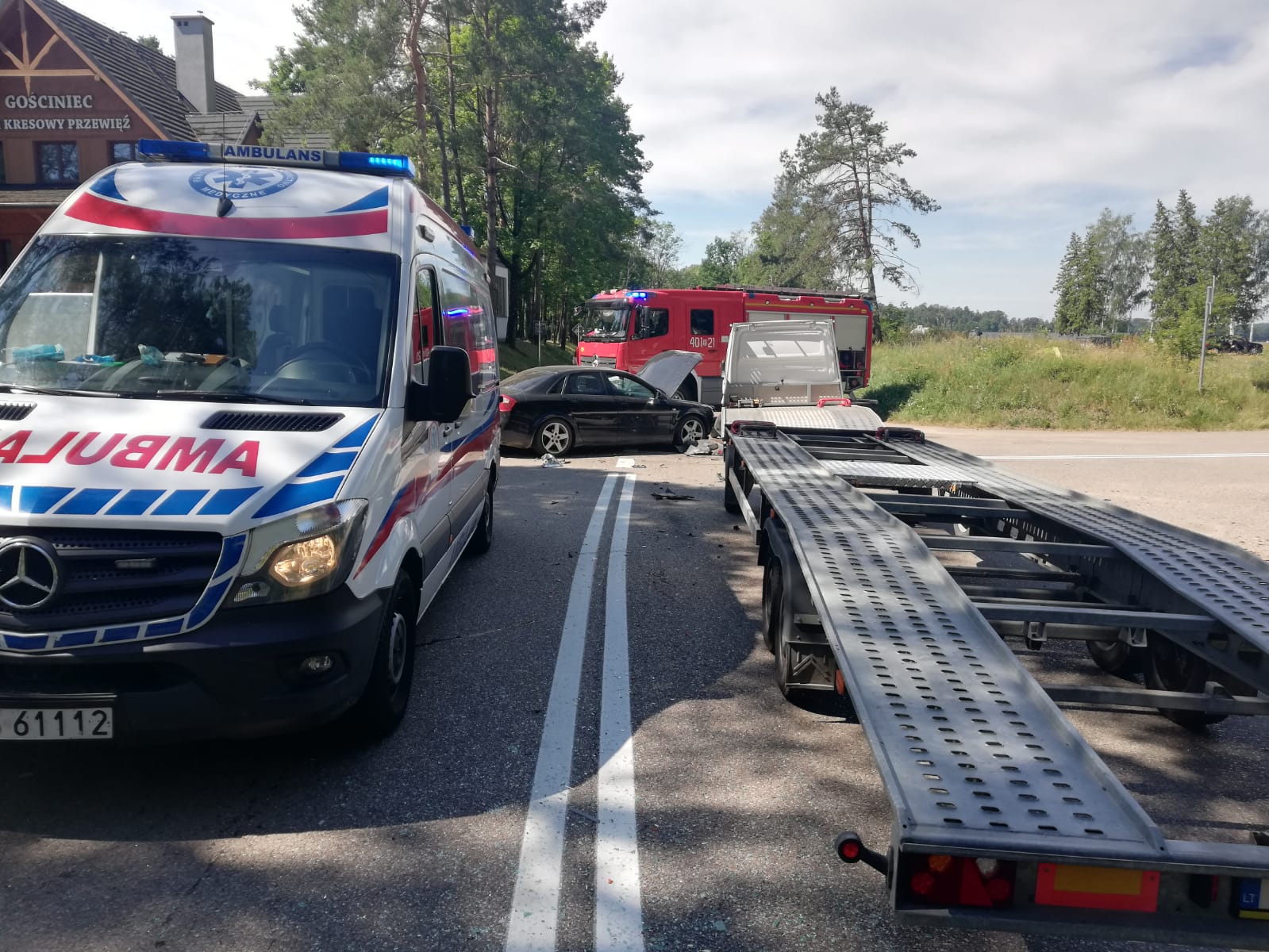 30 czerwca 2021 r. o godz. 10:18 Stanowisko Kierowania Komendanta Powiatowego PSP w Augustowie otrzymało informację o wypadku drogowym na Drodze Krajowej nr 16 w miejscowości Augustów na wysokości Przewięzi.