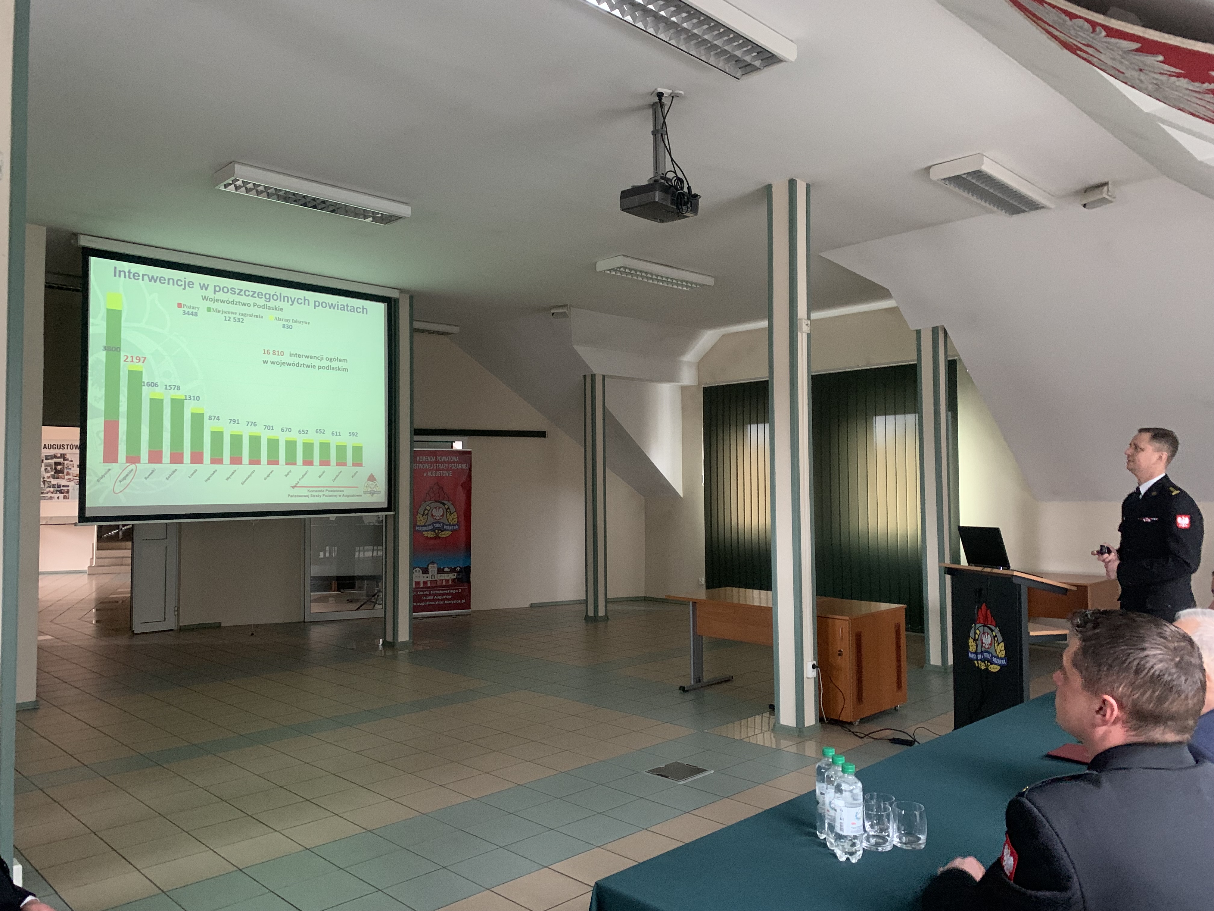 Następnie Podlaski Komendant Wojewódzki Państwowej Straży Pożarnej st. bryg. Sebastian Zdanowicz, podsumował funkcjonowanie ochrony przeciwpożarowej w województwie podlaskim i przedstawił zadania do realizacji w roku bieżącym. Na koniec narady Podlaski Komendant Wojewódzki podziękował wszystkim obecnym za dotychczasową współpracę.