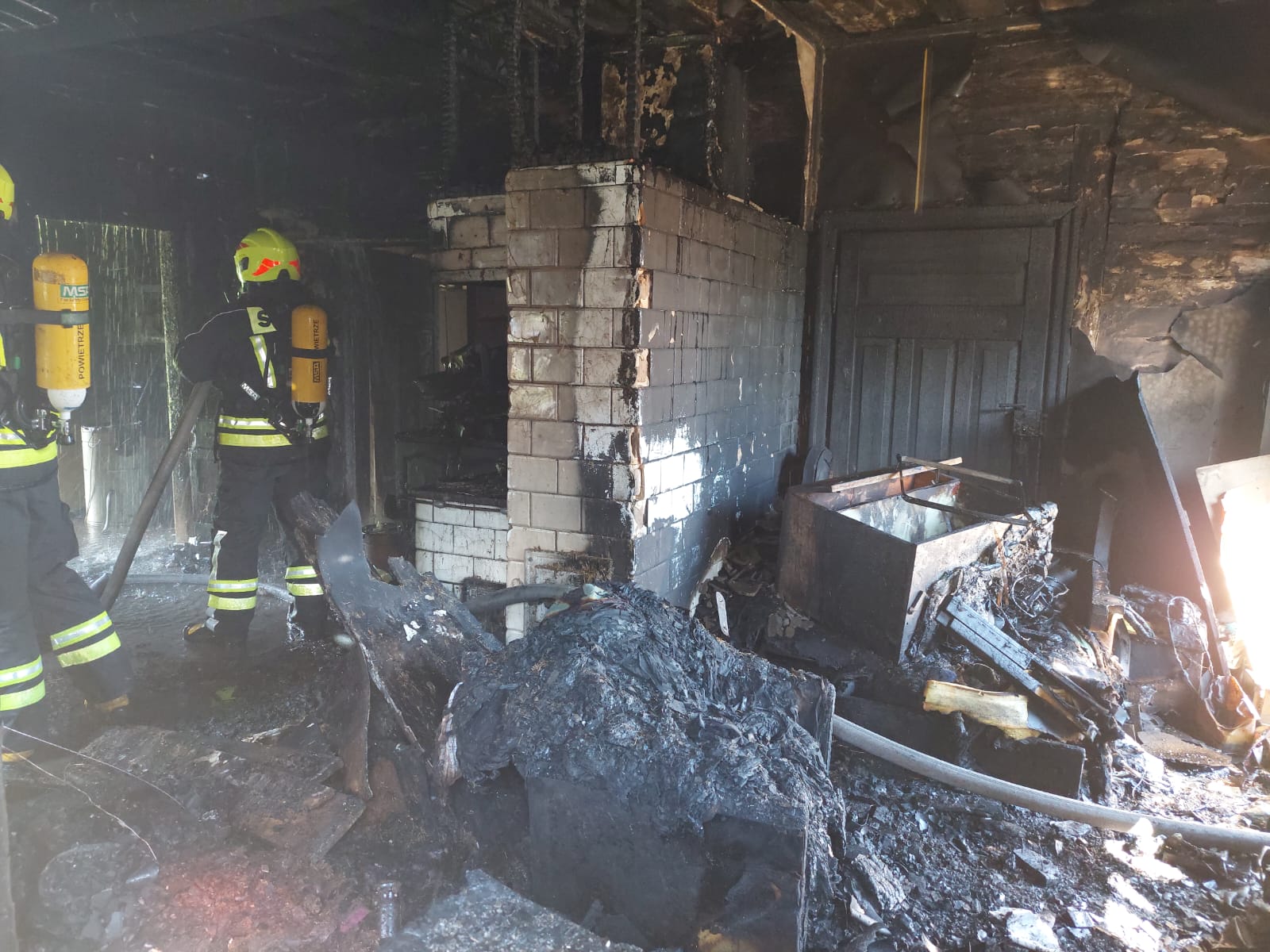 Po przybyciu zastępów Jednostek Ochrony Przeciwpożarowej zastano rozwinięty pożar w budynku mieszkalnym. Działania zastępów JOP polegały na zabezpieczeniu miejsca zdarzenia, wprowadzeniu rot gaśniczych do wnętrza budynku i podaniu prądów wody na objęte ogniem pomieszczenia, wraz z działaniami gaśniczymi prowadzono przeszukanie pomieszczeń pod kątem przebywania osób poszkodowanych. W trakcie działań gaśniczych wewnątrz budynku odnaleziono ciało jednej osoby.