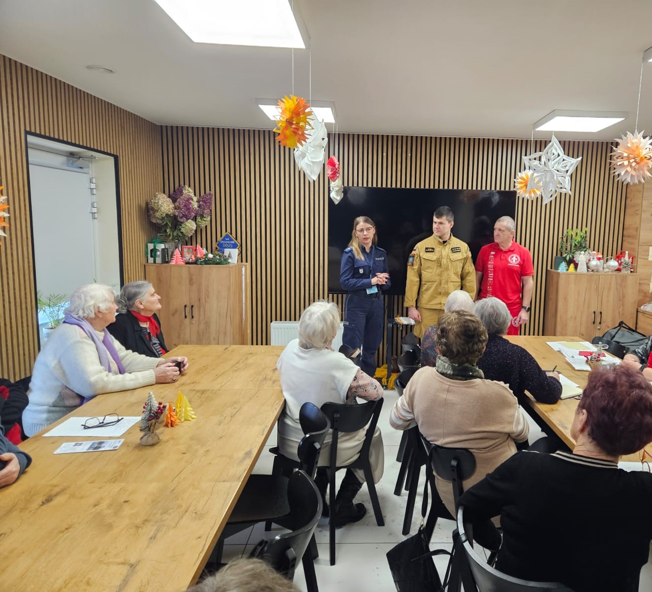 W dniu 22.01.2026 r. w Augustowskim Centrum Aktywności Seniorów strażacy Państwowej Straży Pożarnej, wspólnie z funkcjonariuszami Policji oraz ratownikami WOPR Augustów, przeprowadzili spotkanie edukacyjno-profilaktyczne.