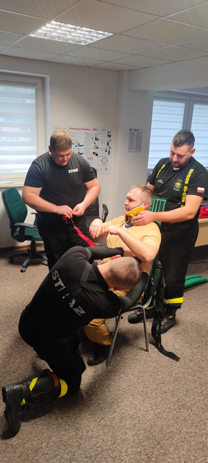 W dniach od 28 października do 26 listopada2023 roku w Komendzie Powiatowej Państwowej Straży Pożarnej w Augustowie odbył się pierwszy cykl szkolenia kwalifikowanej pierwszej pomocy druhom Ochotniczej Straży Pożarnej powiatu augustowskiego. W szkoleniu uczestniczyły 24 osoby, które realizowały program kursu mający na celu odpowiednie przygotowanie strażaków jednostek OSP do realizacji zadań z zakresu ratownictwa medycznego w czasie akcji ratowniczych, w szczególności udzielania kwalifikowanej pierwszej pomocy osobom w stanie bezpośredniego zagrożenia życia i zdrowia na miejscu zdarzenia do czasu przekazania ich zespołom ratownictwa medycznego.