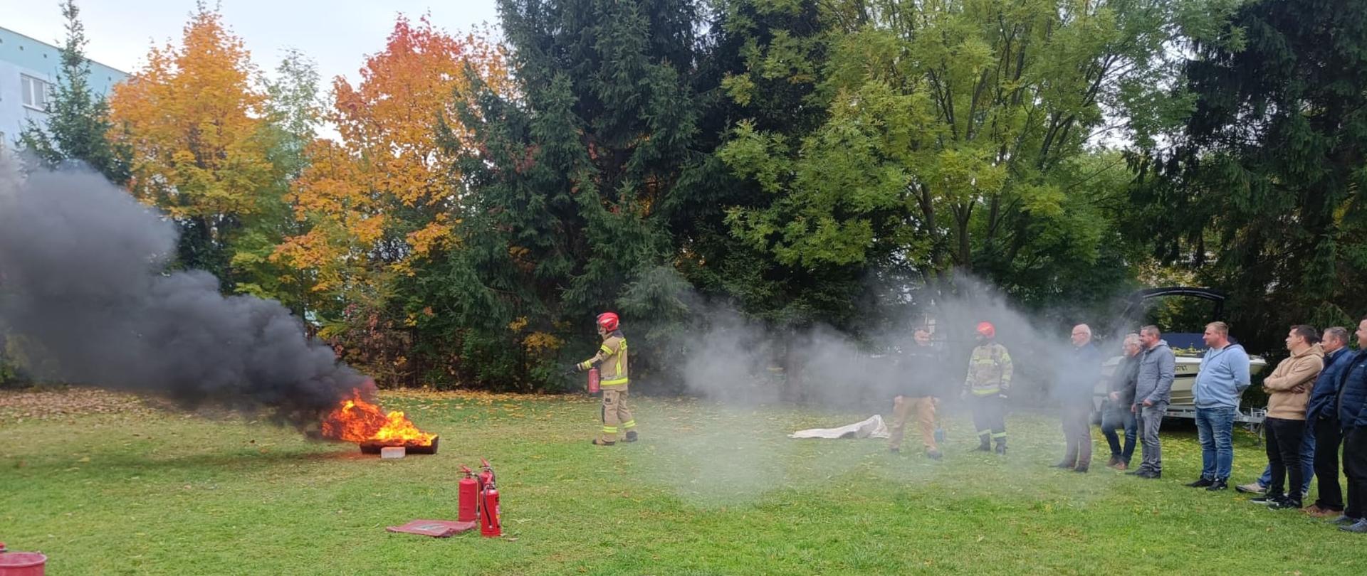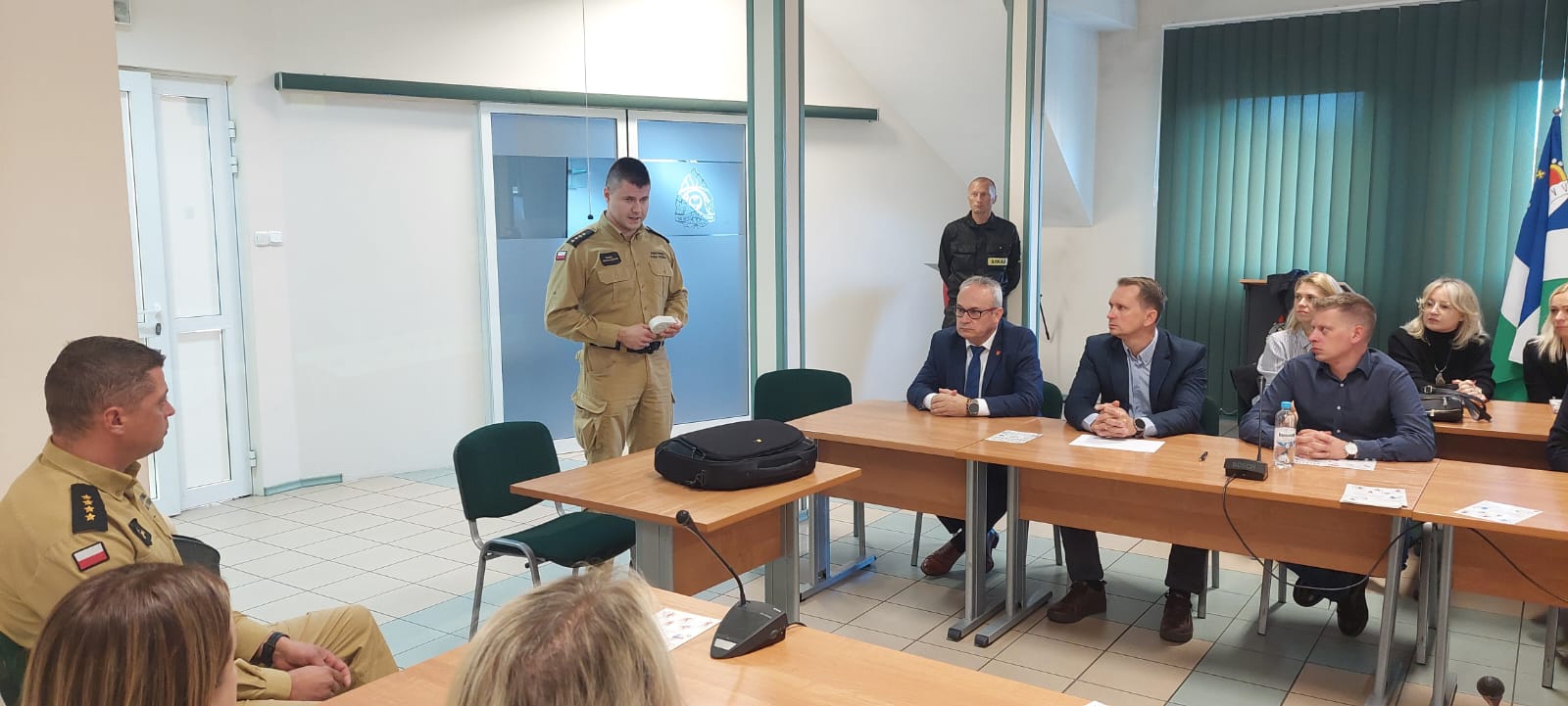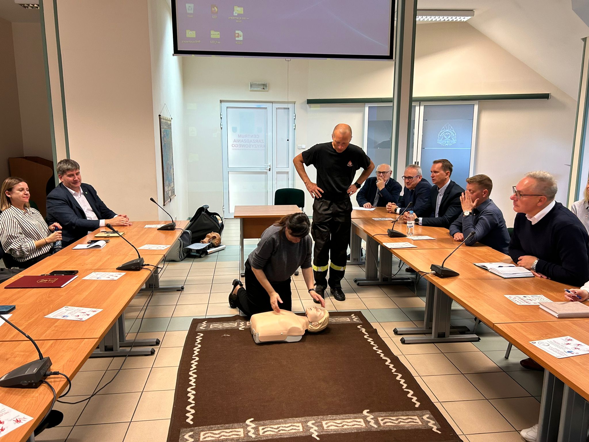 23 października 2024 r. w Komendzie Powiatowej Państwowej Straży Pożarnej w Augustowie przeprowadzono prelekcję pracownikom Starostwa Powiatowego oraz Urzędu Miejskiego w Augustowie na temat zachowania się na wypadek powstania pożaru w obiekcie. Omówiono zasady bezpiecznej ewakuacji oraz praktyczne wykorzystanie dostępnego sprzętu gaśniczego, a także przedstawiono zasady udzielania pierwszej pomocy przedmedycznej osobom poszkodowanym. Uczestnicy mogli w sposób praktyczny użyć gaśnicy proszkowej oraz koca gaśniczego.