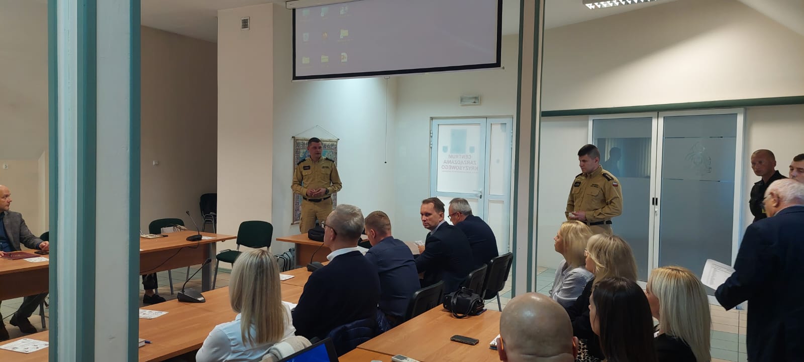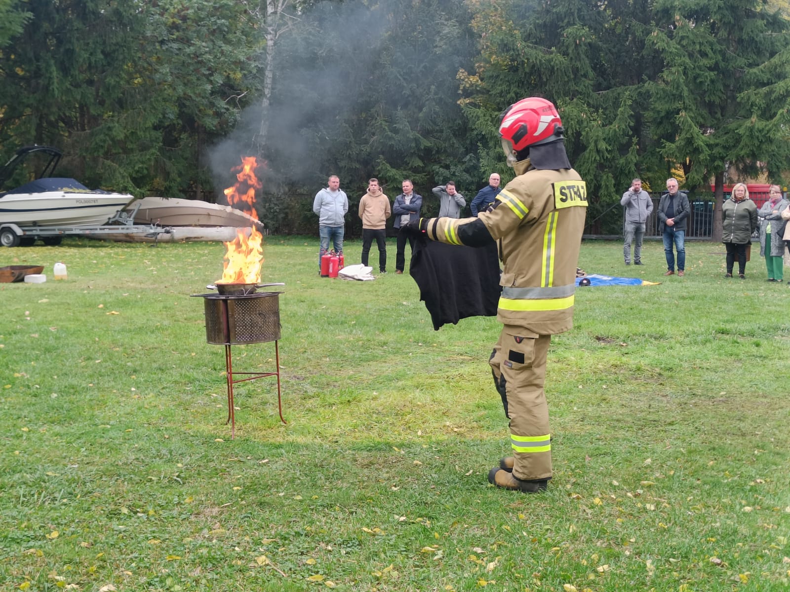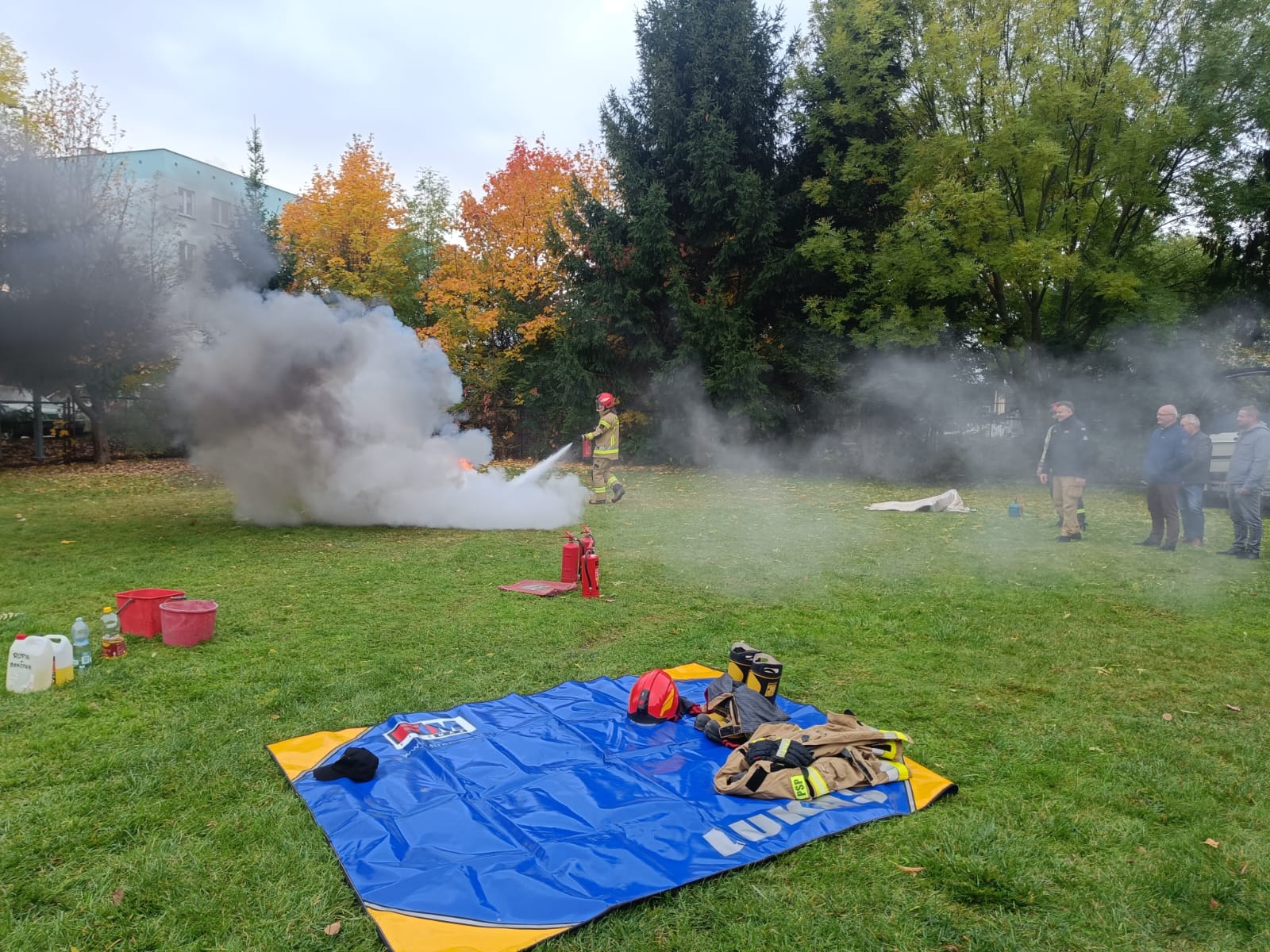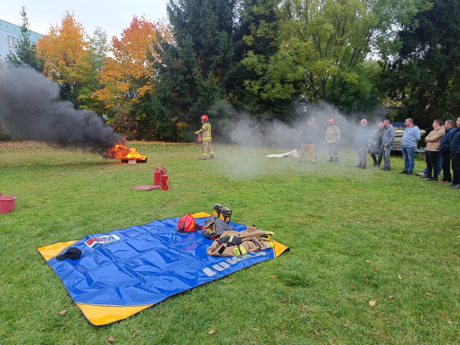 23 października 2024 r. w Komendzie Powiatowej Państwowej Straży Pożarnej w Augustowie przeprowadzono prelekcję pracownikom Starostwa Powiatowego oraz Urzędu Miejskiego w Augustowie na temat zachowania się na wypadek powstania pożaru w obiekcie. Omówiono zasady bezpiecznej ewakuacji oraz praktyczne wykorzystanie dostępnego sprzętu gaśniczego, a także przedstawiono zasady udzielania pierwszej pomocy przedmedycznej osobom poszkodowanym. Uczestnicy mogli w sposób praktyczny użyć gaśnicy proszkowej oraz koca gaśniczego.