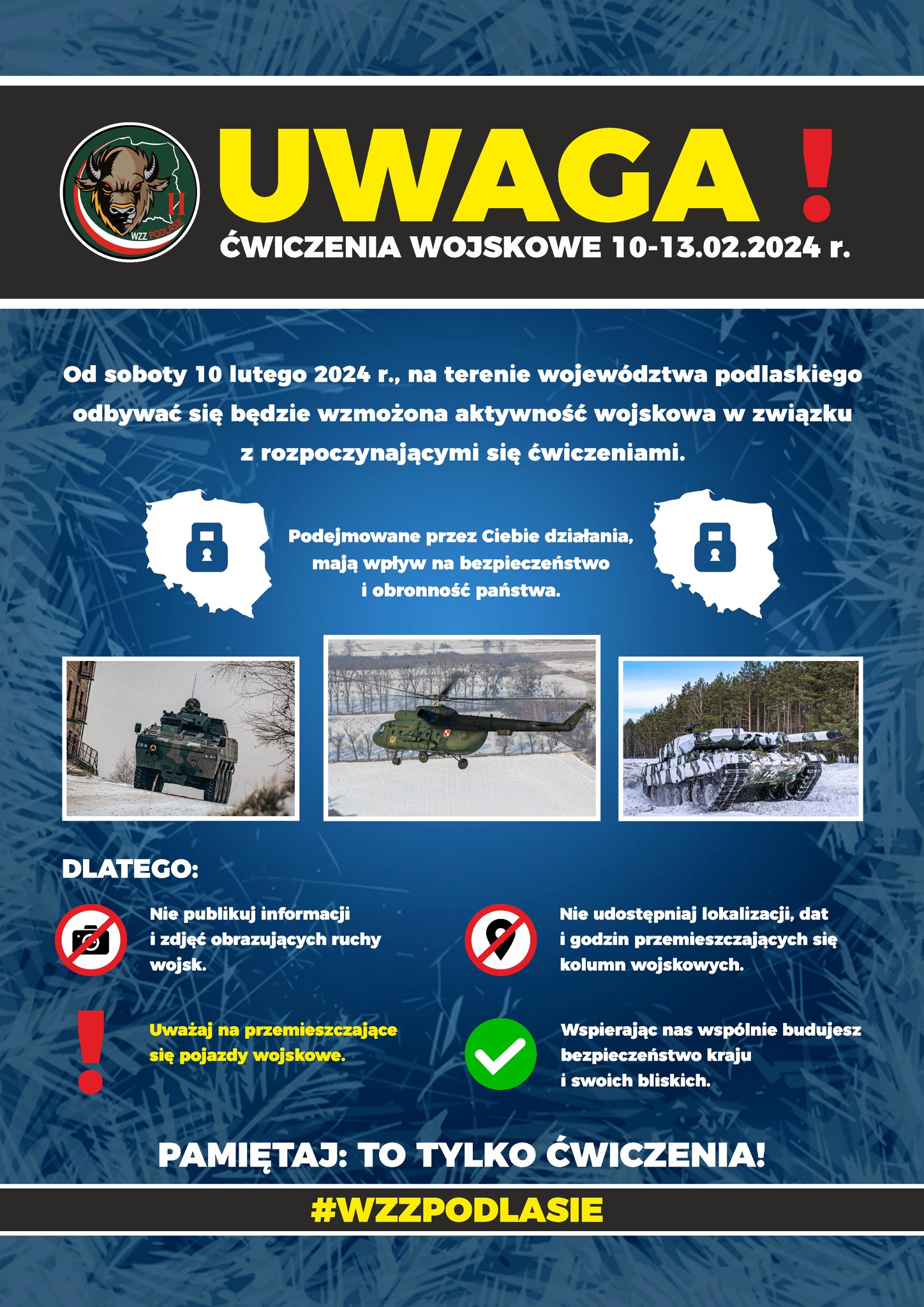 Wojskowe Zgrupowanie Zadaniowe Podlasie - Komunikat BEZPIECZNE PODLASIE oraz ĆWICZENIA WOJSKOWE