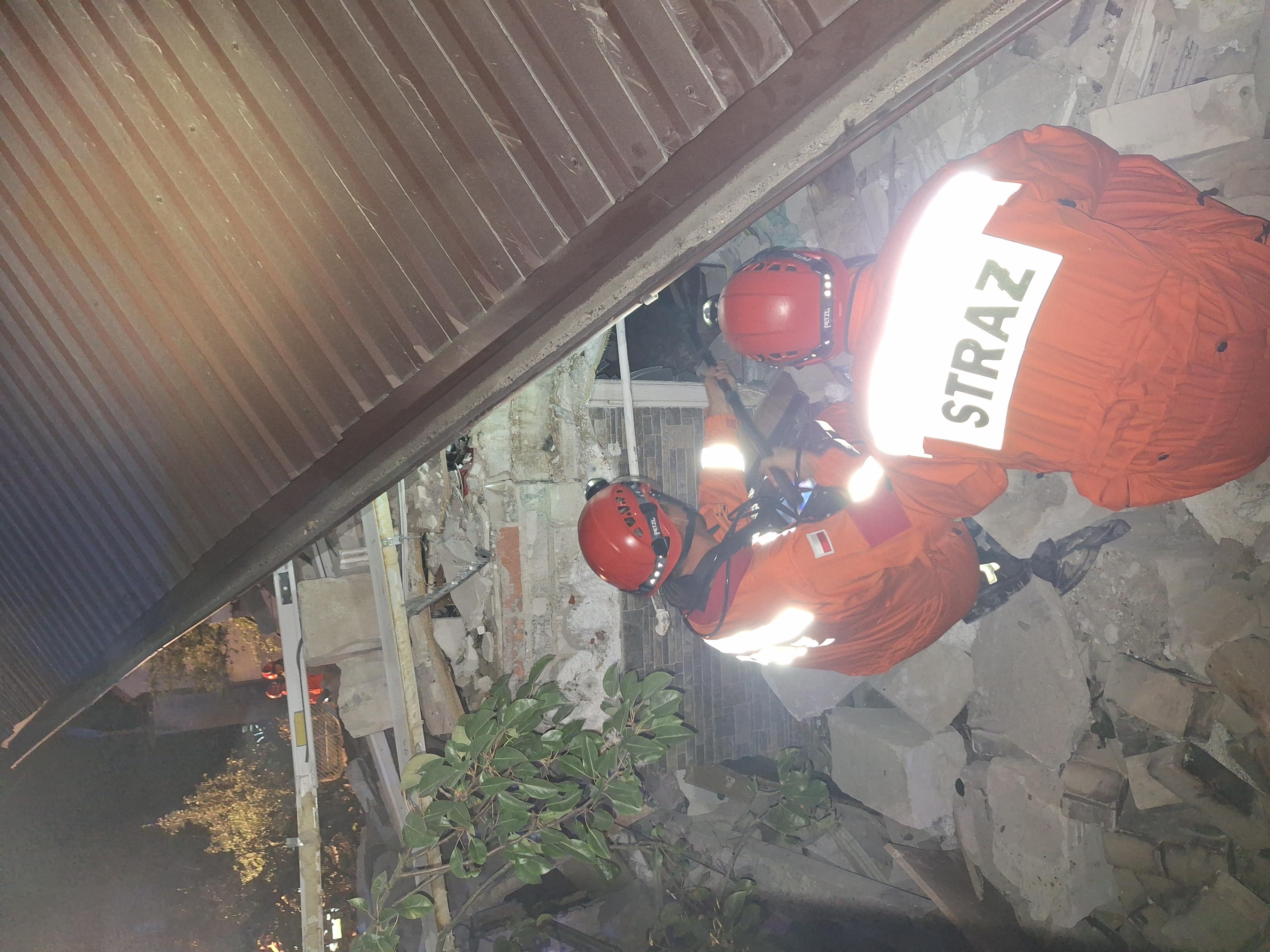 Następnie przystąpiono do przeszukiwania miejsc, w których prawdopodobnie mógł przebywać mężczyzna. Po zlokalizowaniu wołającego o pomoc poszkodowanego, zastabilizowano rumowisko i rozpoczęto odgruzowywanie mężczyzny, którego finalnie udało się uwolnić i przekazać Zespołowi Ratownictwa Medycznego.