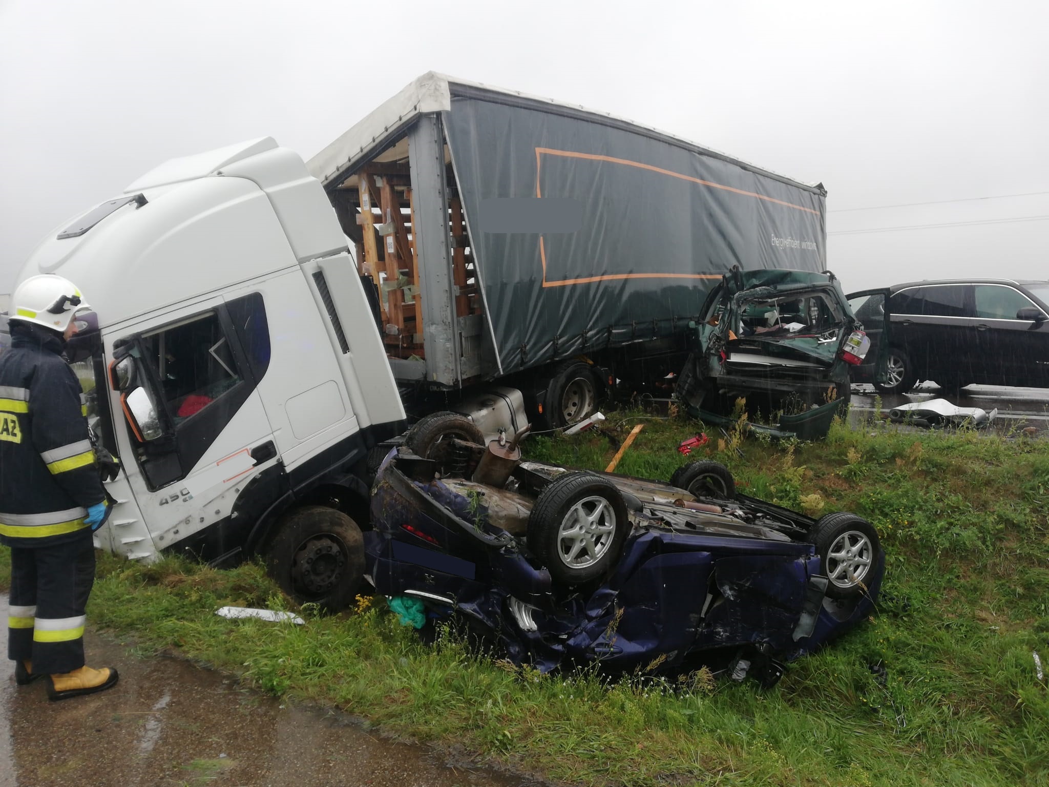 Wypadek sześciu samochodów na DK 8 w strugach deszczu