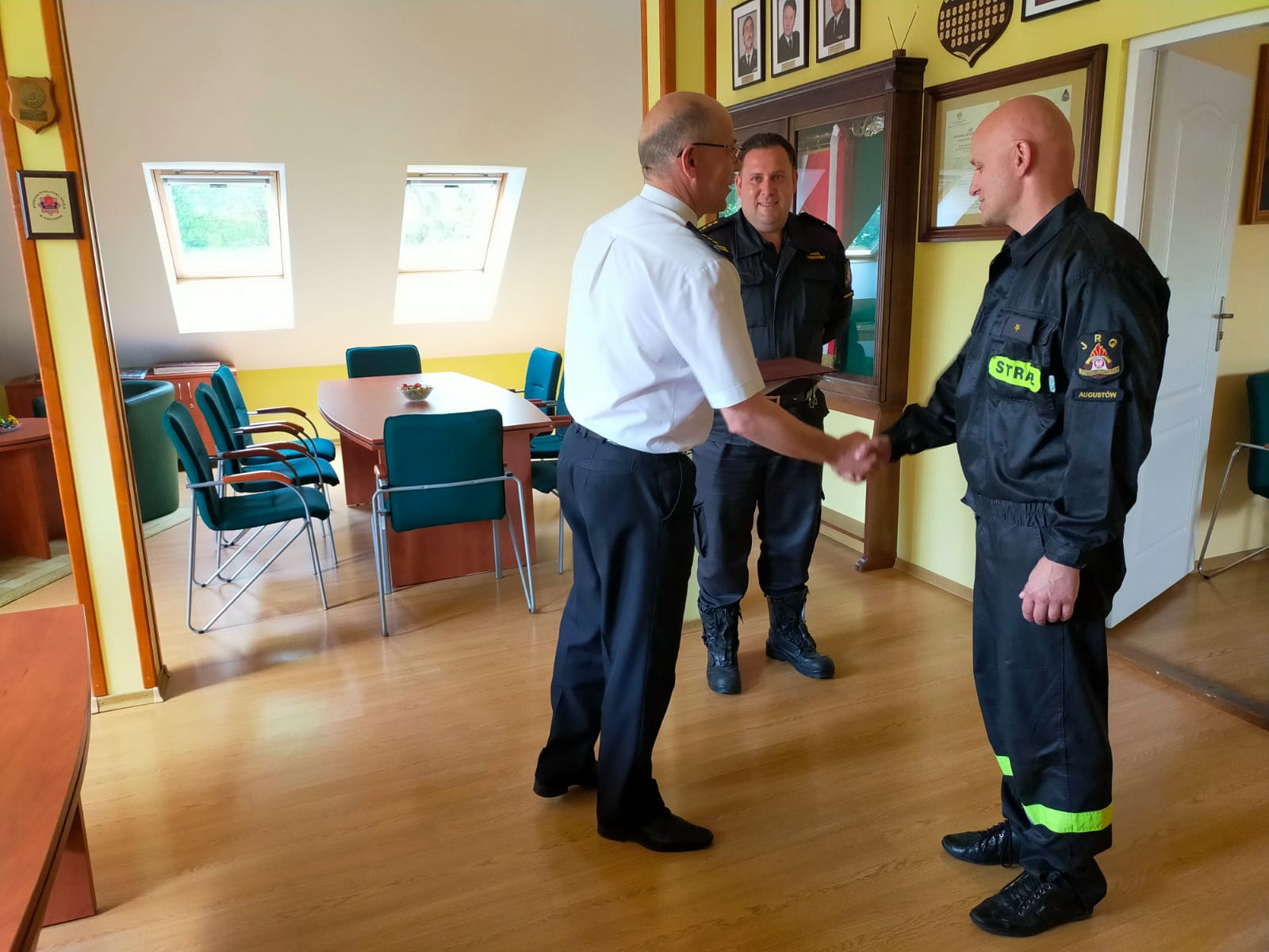 W dniu 15 czerwca 2022 r. Komendant Powiatowy PSP w Augustowie st. bryg. Leszek Krzyżewski przekazał na ręce funkcjonariusza asp. Andrzeja Sobolewskiego list gratulacyjny Komendanta Wojewódzkiego oraz decyzje o przyznaniu nagrody finansowej.