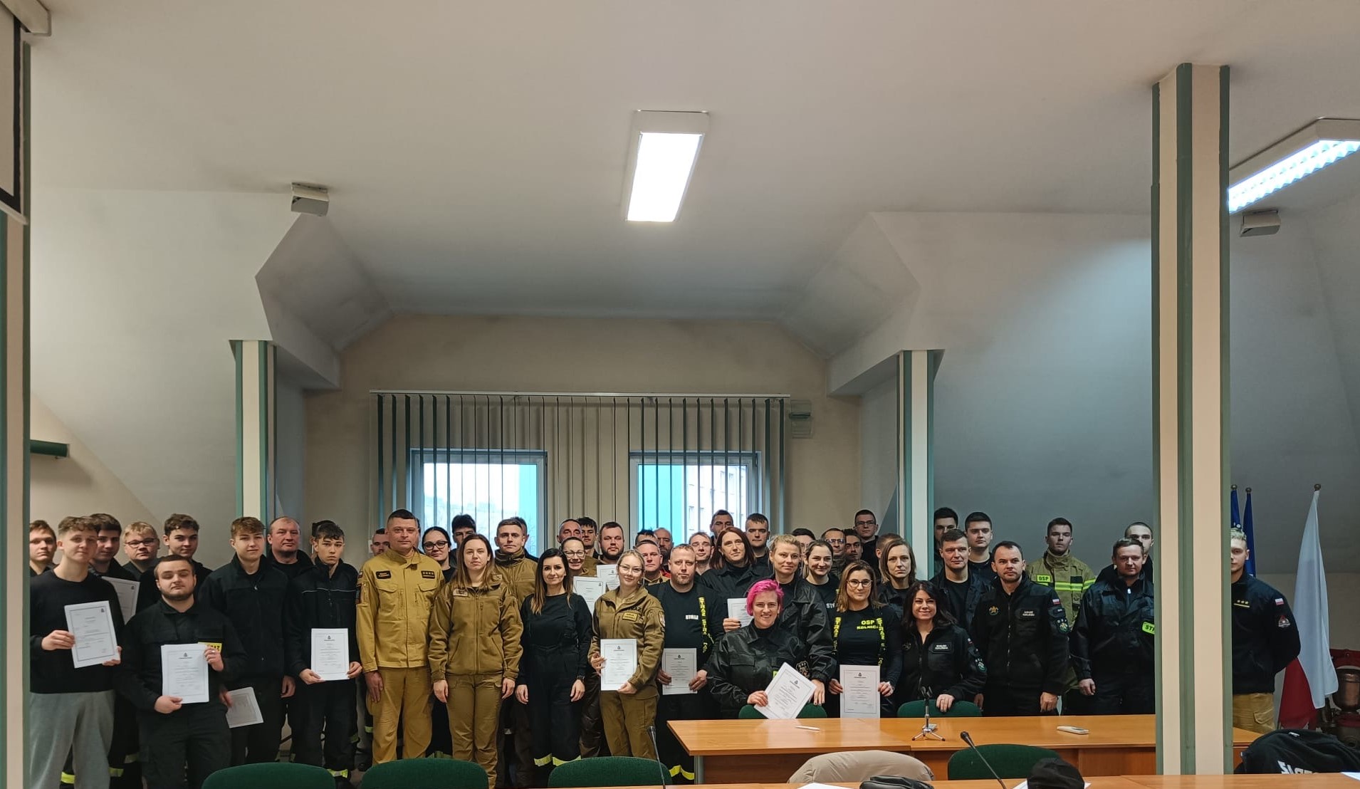 Niespełna trzymiesięczne szkolenie realizowane w systemie weekendowym z pozytywnym wynikiem ukończyło 55 ratowników, którzy tym samym nabyli wiedzę i umiejętności do wykonywania podstawowych czynności ratowniczych, w tym gaśniczych, właściwych dla rot w zastępie.