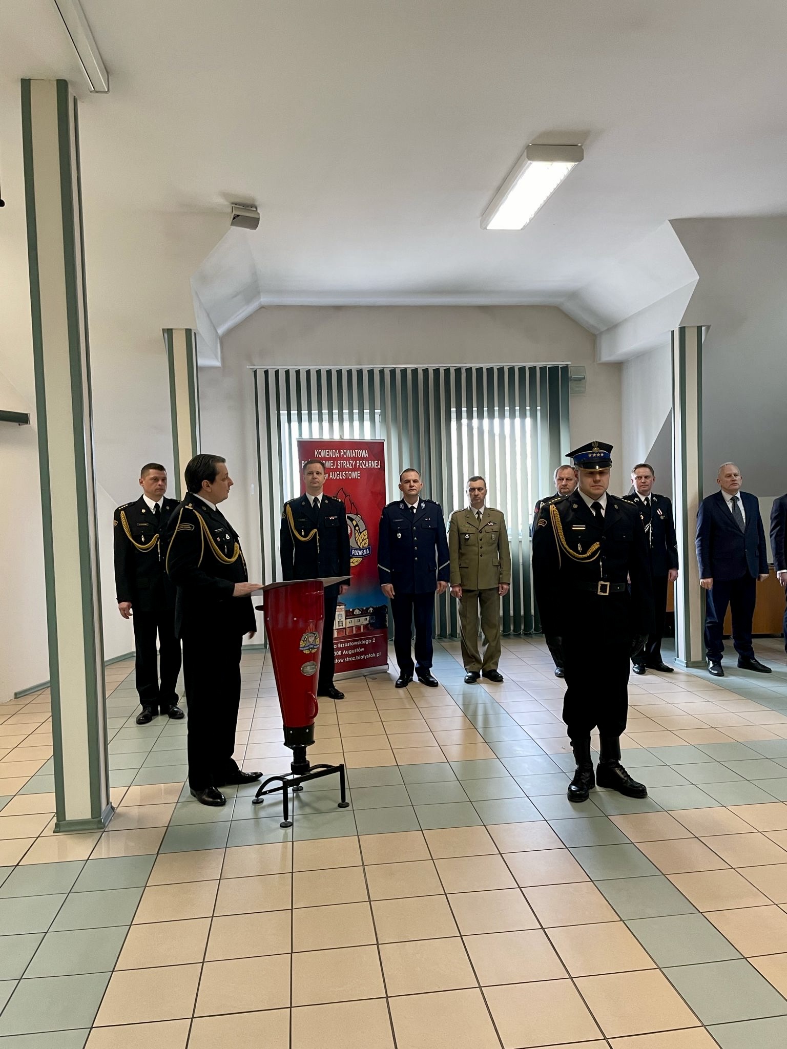 11 marca 2024 roku w siedzibie Komendy Powiatowej Państwowej Straży Pożarnej w Augustowie, w obecności zaproszonych gości oraz funkcjonariuszy i pracowników komendy, odbyła się uroczystość związana ze zdaniem obowiązków Komendanta Powiatowego Państwowej Straży Pożarnej w Augustowie przez st. bryg. Marcina Wierela oraz powierzeniem obowiązków Komendanta Powiatowego st. kpt. Michałowi Olszewskiemu.