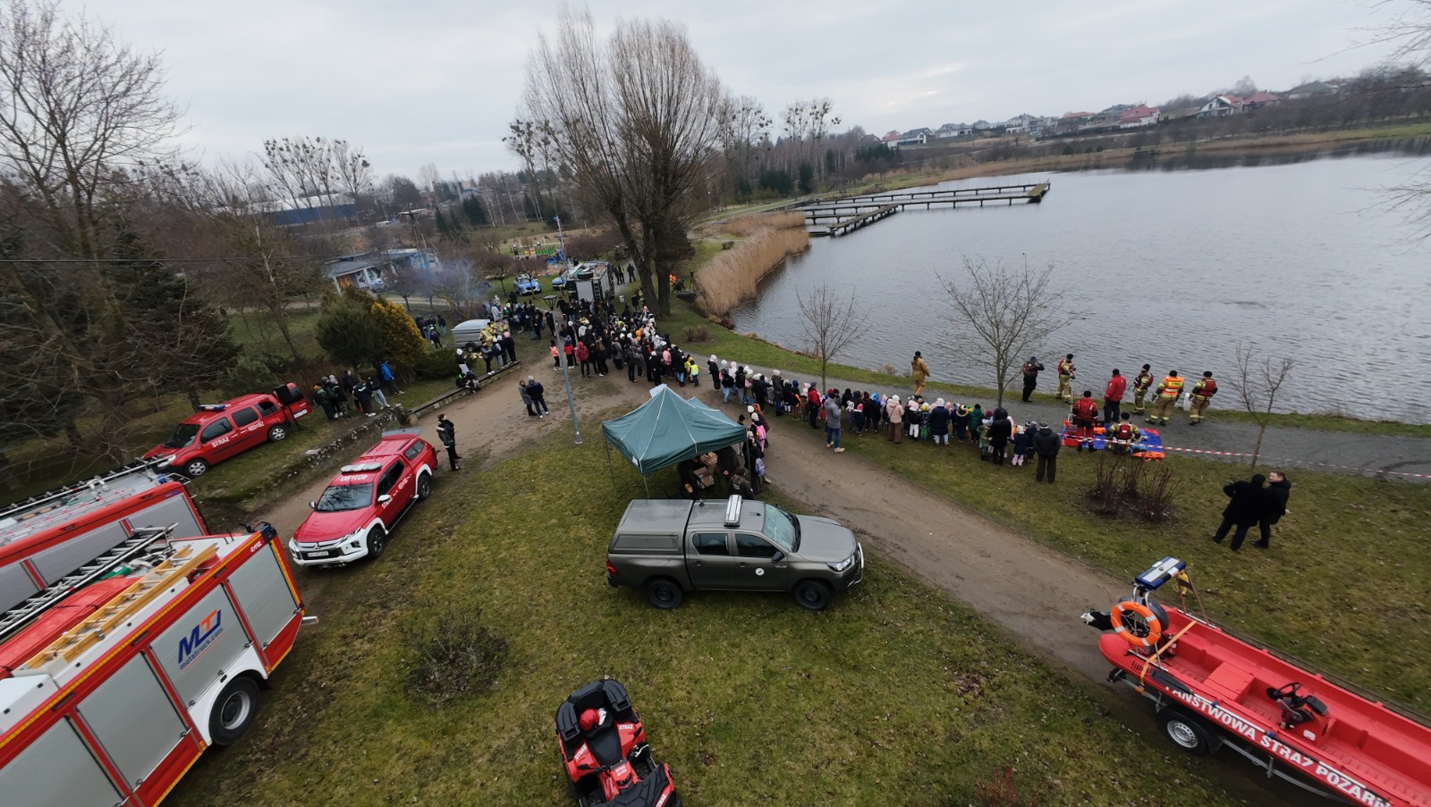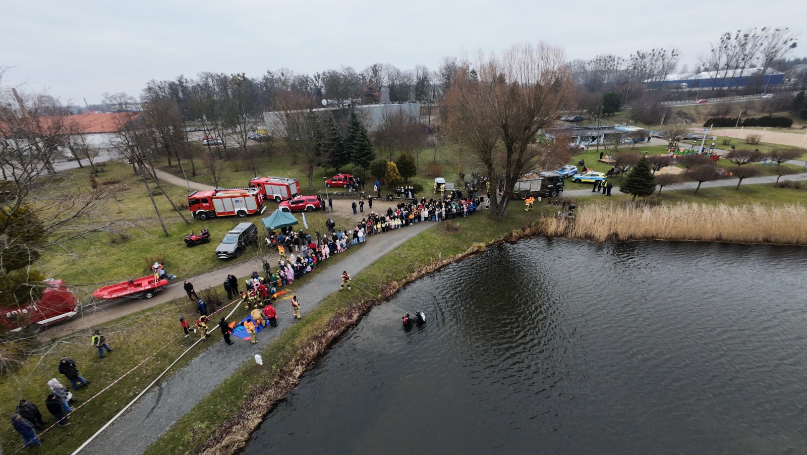 Ze względu na brak pokrywy lodowej na jeziorze, strażacy PSP zaprezentowali techniki ratownicze z zakresu ratownictwa wodnego oraz pracę specjalistycznej grupy ratownictwa wodno - nurkowego. Poza zagadnieniami dotyczącymi bezpieczeństwa w pobliżu akwenów wodnych poruszano tematy informowania służb o zagrożeniach oraz udzielania pomocy poszkodowanym.