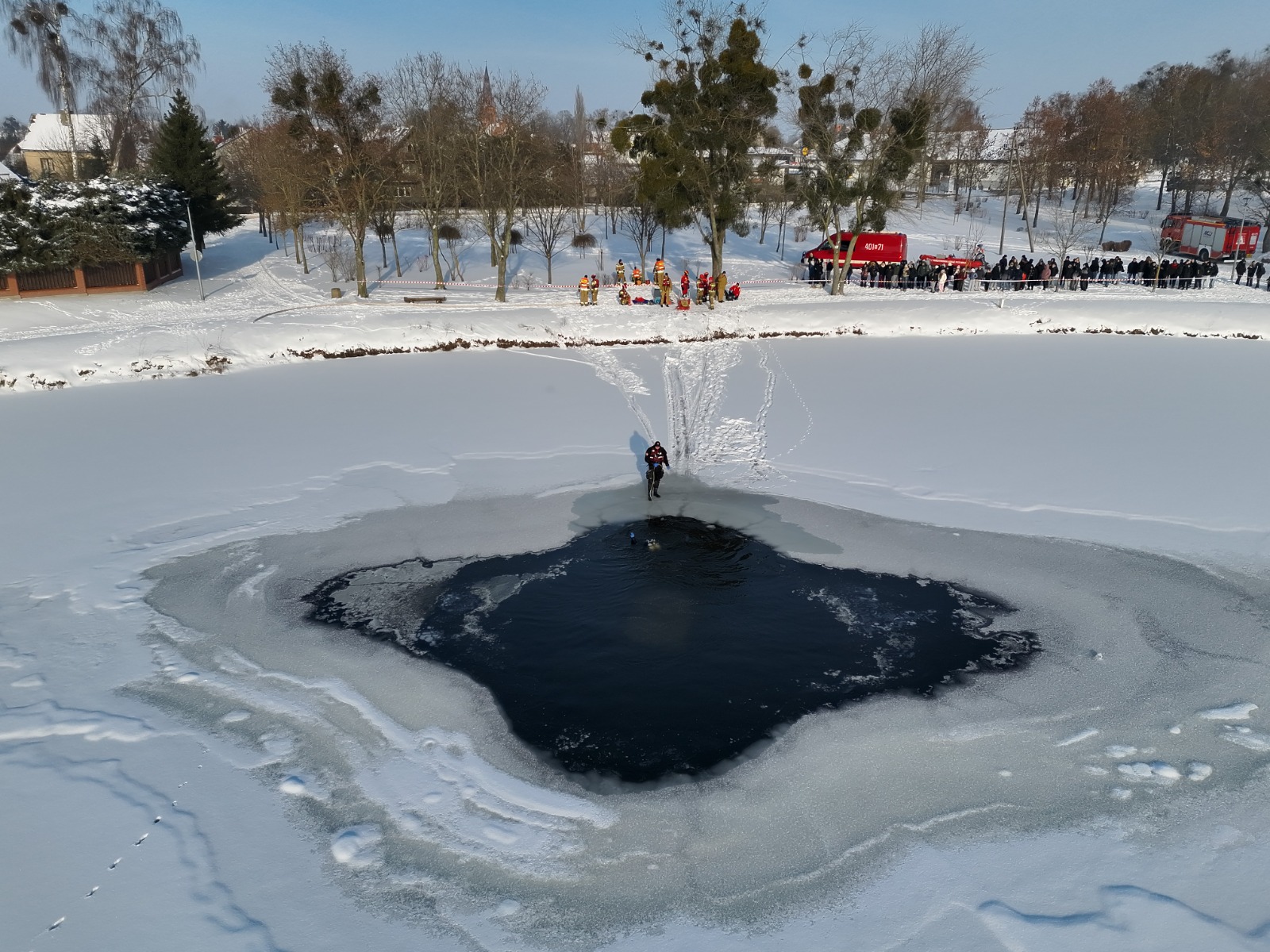 W tym roku szczególny nacisk położony został na zagrożenia związane z wchodzeniem na zamarznięte akweny. Mimo panujących mrozów, Jeziorko Mleczarskie – ze względu na proces napowietrzania – nie zamarzło w pełni. W kilku miejscach woda pozostała odkryta, a tafla lodu była zdradliwie cienka. Była to doskonała lekcja pokazująca, że nawet przy niskich temperaturach lód może być śmiertelną pułapką.