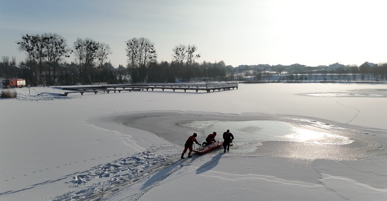 - jak reagować w sytuacji załamania się lodu pod człowiekiem,