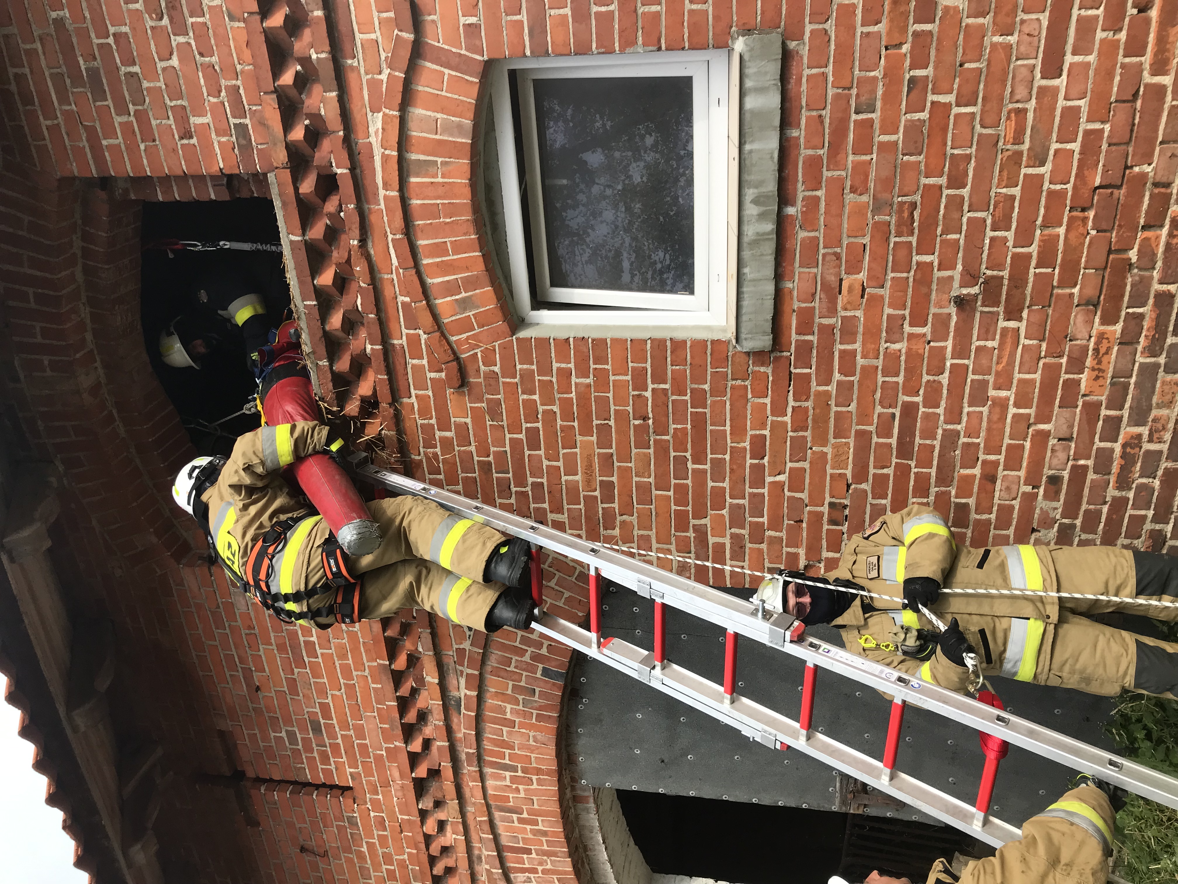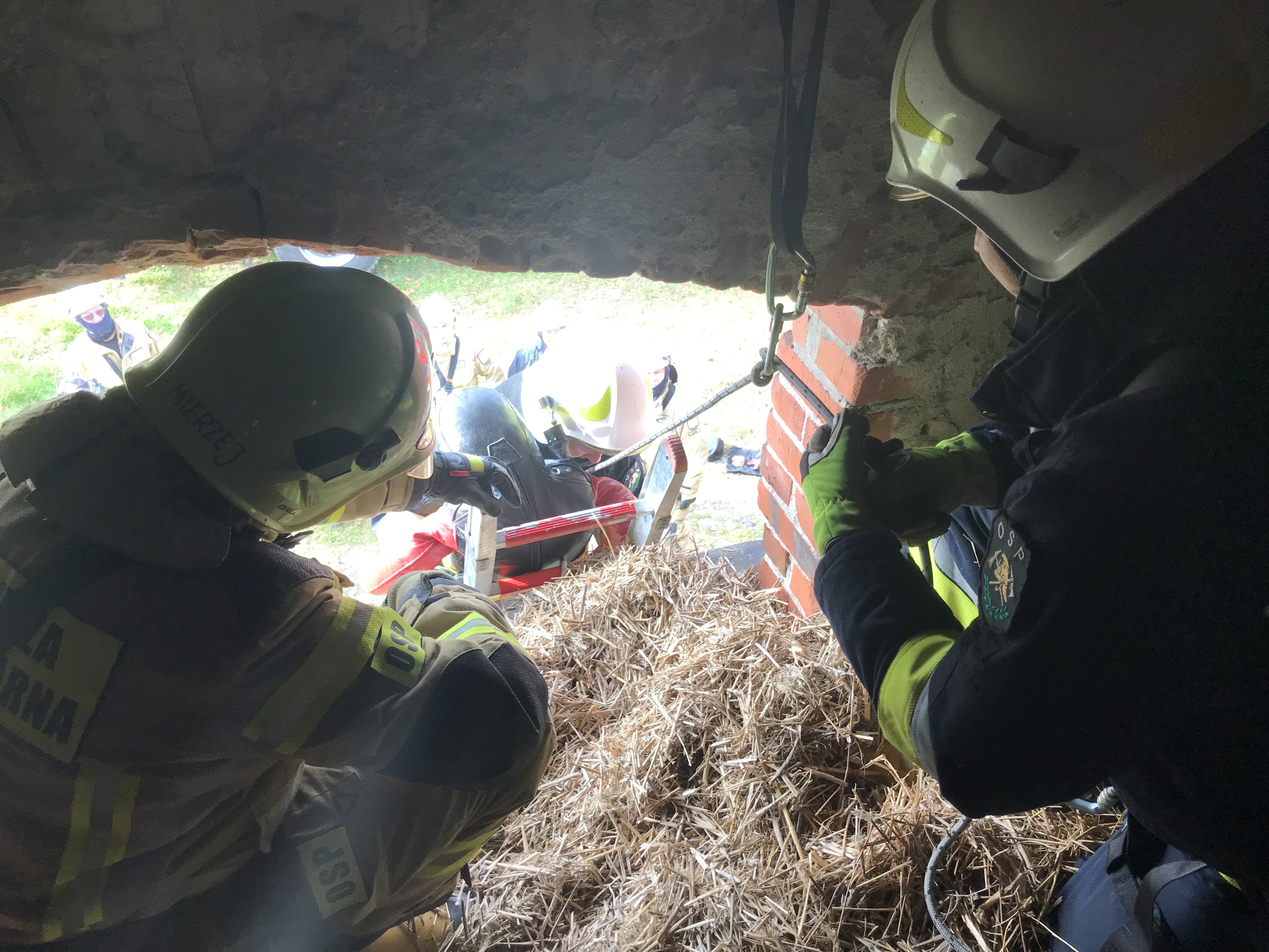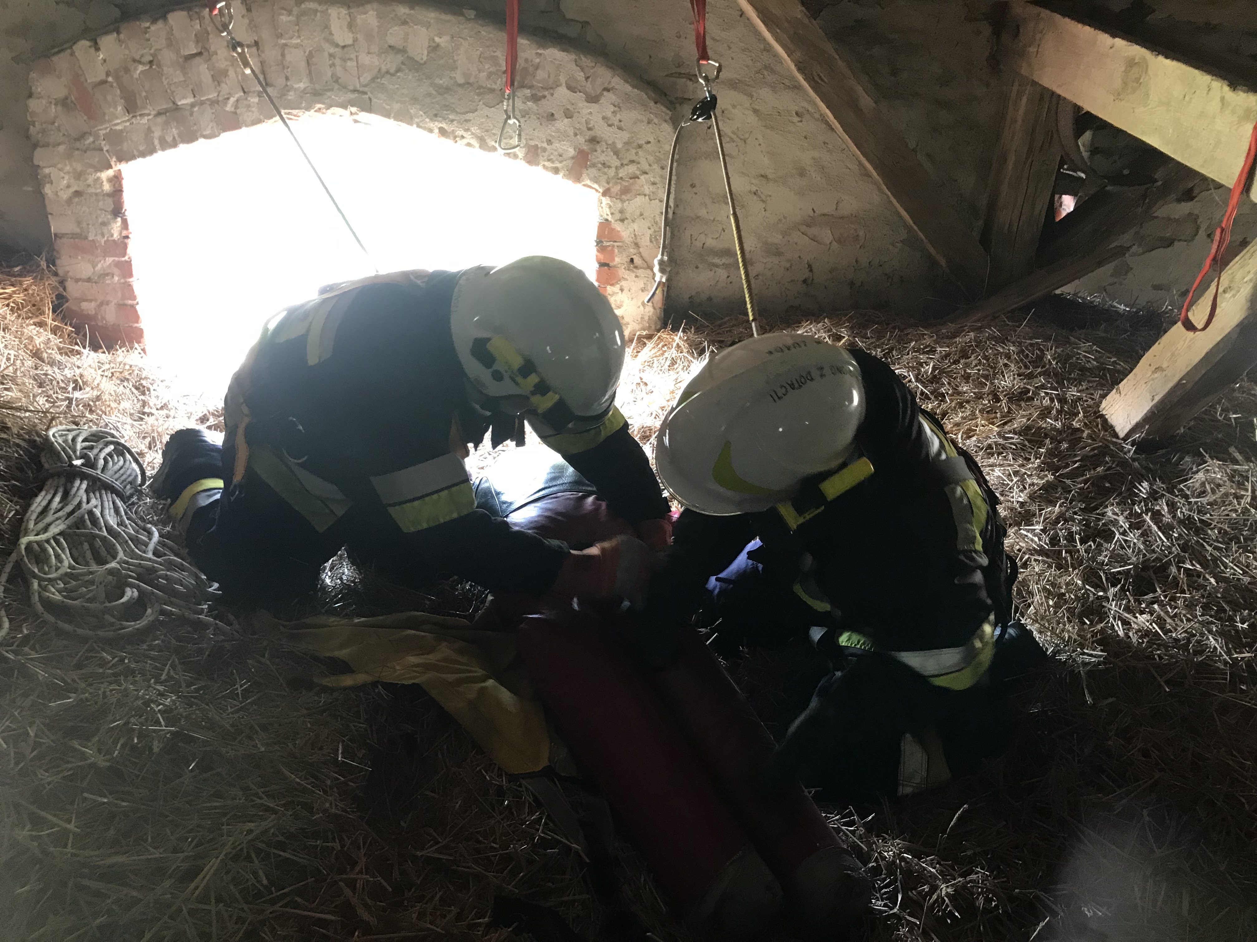 - ewakuować osobę nieprzytomną z poddasza budynku gospodarczego przez okno z wysokości około 4 m przy użyciu drabiny przystawnej,
