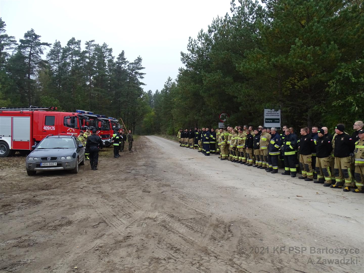 02.10.2021 r. w godzinach od 9:00 - 17:00 około 50 strażaków ochotników z powiatu bartoszyckiego brało udział w ćwiczeniach zorganizowanych na terenie Nadleśnictwa Górowo Iławeckie.