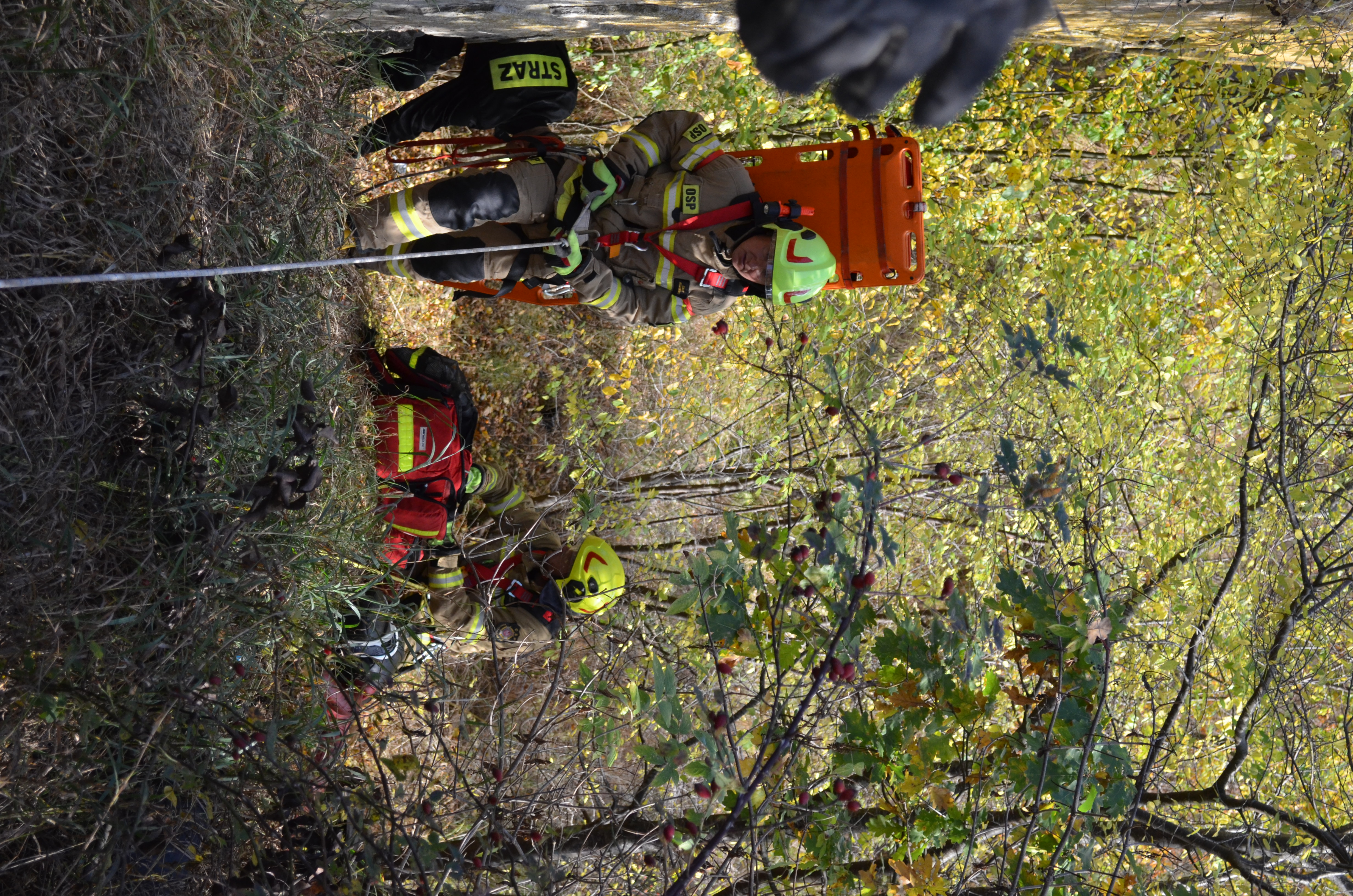 - ratownictwo techniczne + ratownictwo wysokościowe: udzielenie pomocy osobie uwięzionej pod pojazdem, odnalezienie oraz ewakuacja osoby, która upadła z nasypu kolejowego,