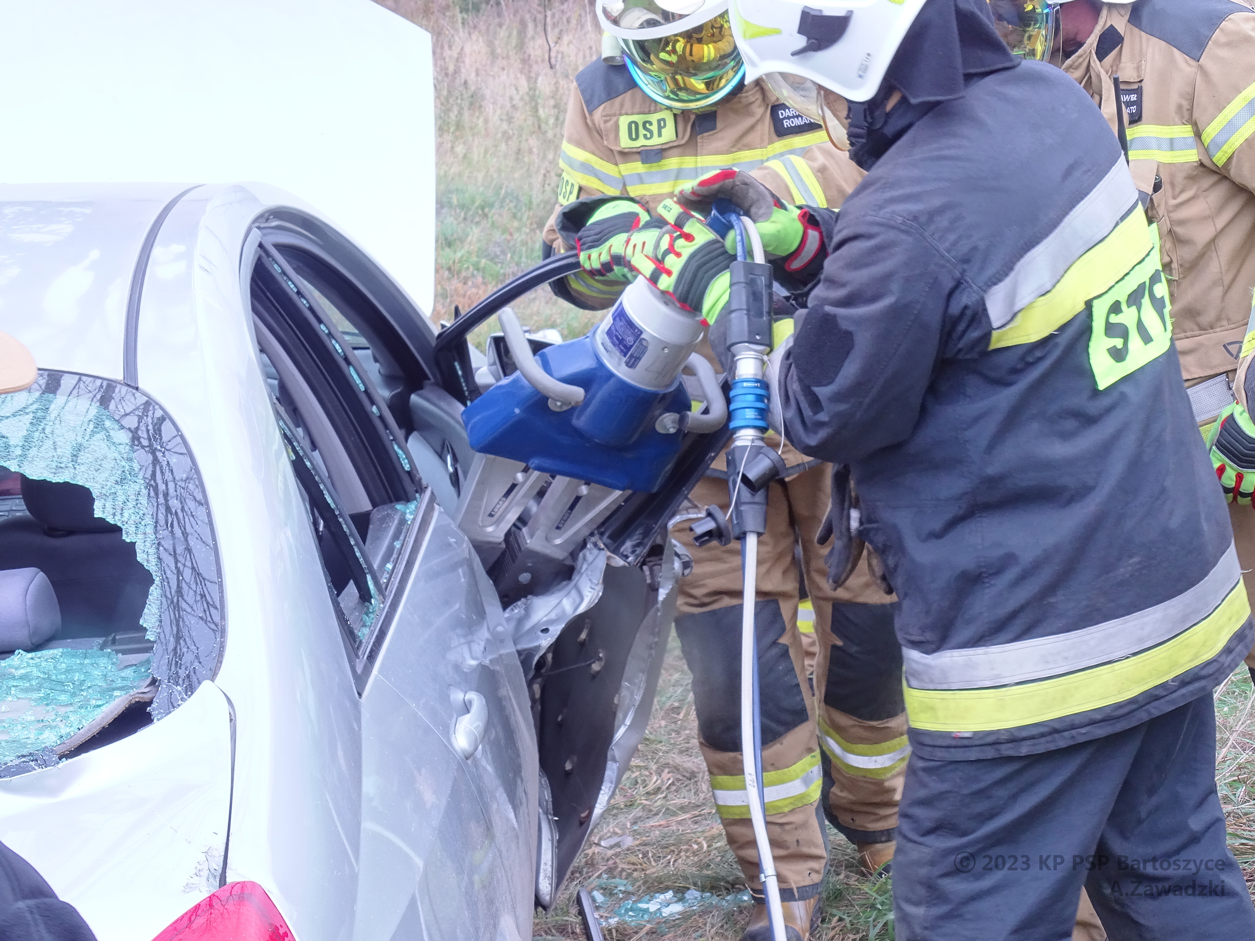 - ratownictwo techniczne - wypadek komunikacyjny: wykonanie dostępu do osób uwięzionych w pojeździe przy użyciu ratowniczych zestawów hydraulicznych,