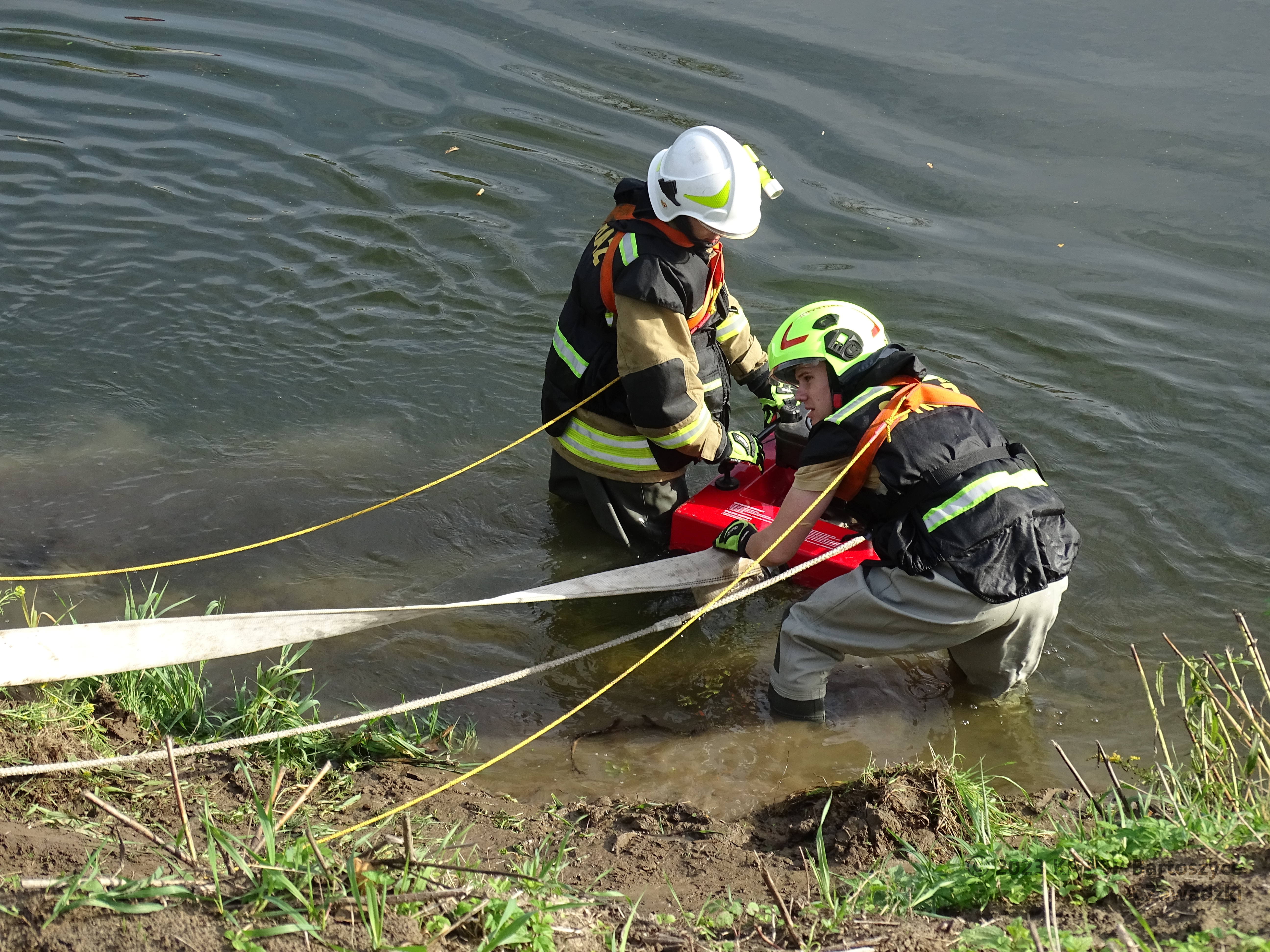 - ratownictwo wodne: działania prowadzone na wodzie płynącej, wydobycie z wody dwóch osób niesioncyh nurtem rzeki,