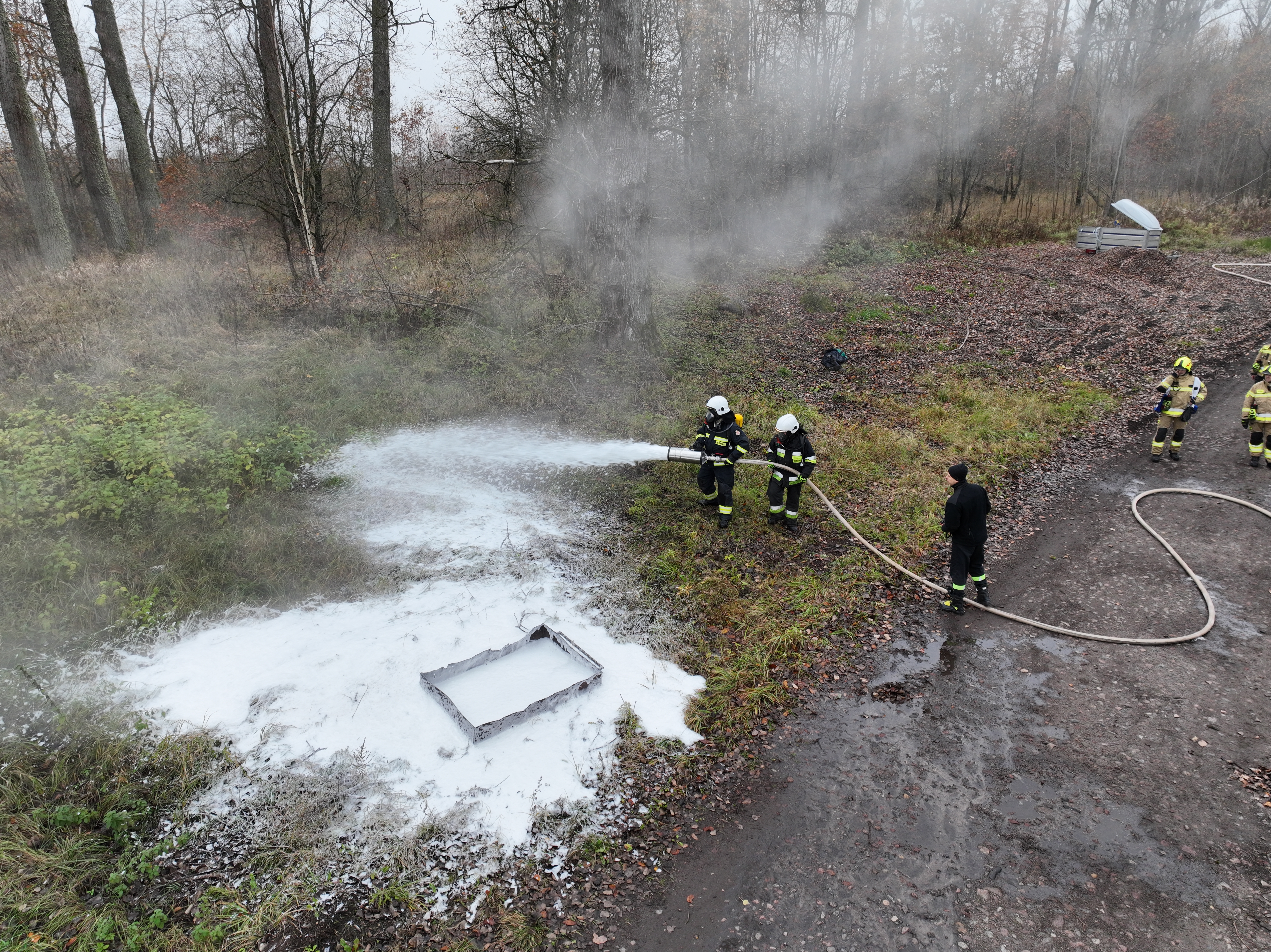 - działania gaśnicze: pożar substancji ropopochodnej, ewakuacja poszkodowanego po ekspozycji ognia, ugaszenie rozlewiska pianą gaśniczą.