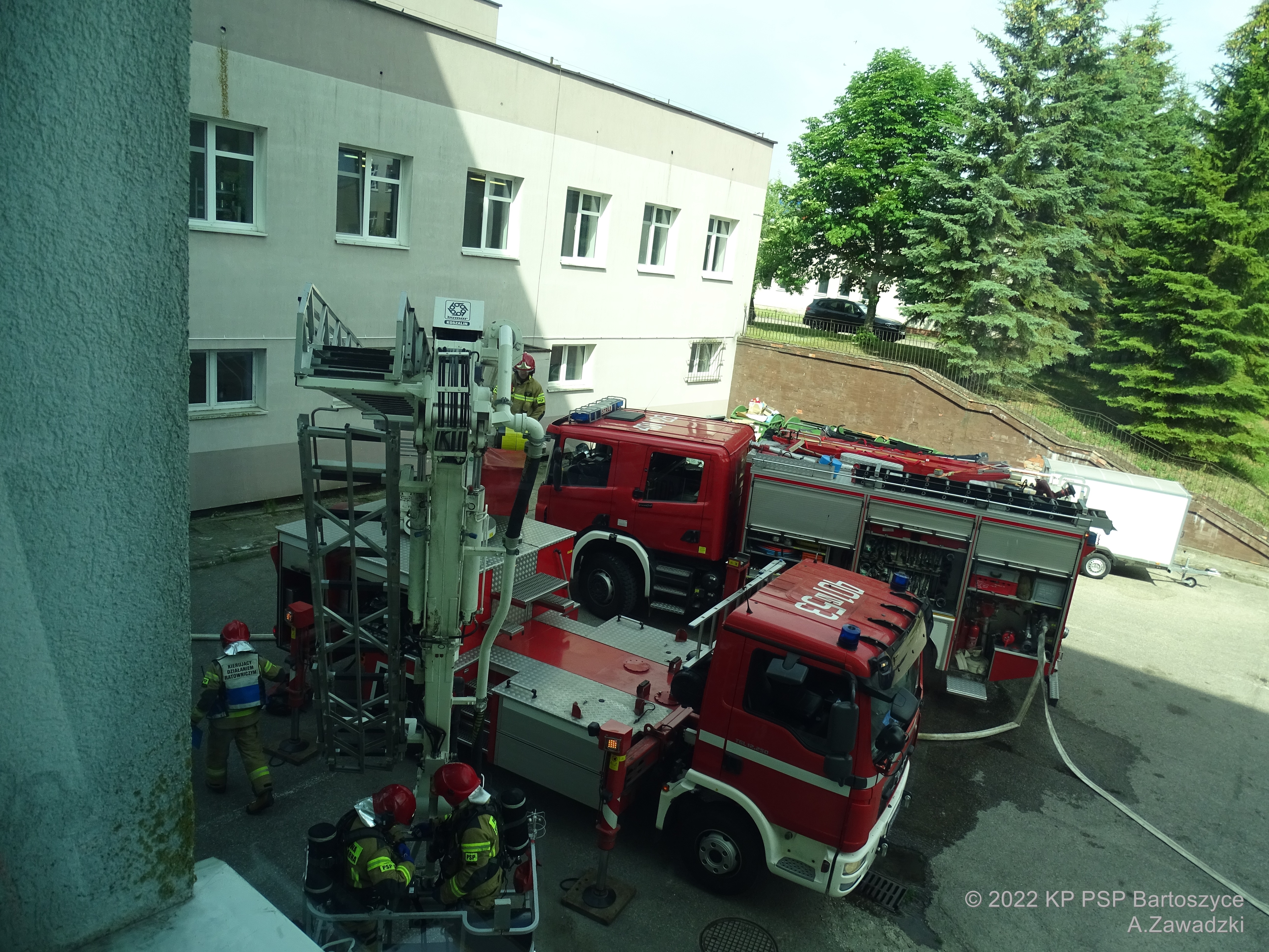 Dnia 30.06.2022 r. w Szpitalu Powiatowym w Bartoszycach odbyły się ćwiczenia Dowódcy JRG oraz innych służb połączone z próbną ewakuacją szpitala.