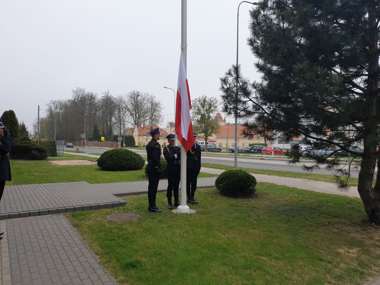W trakcie uroczystej zmiany służby dokonano wciągnięcia flagi państwowej na maszt oraz odegrano hymn narodowy.
