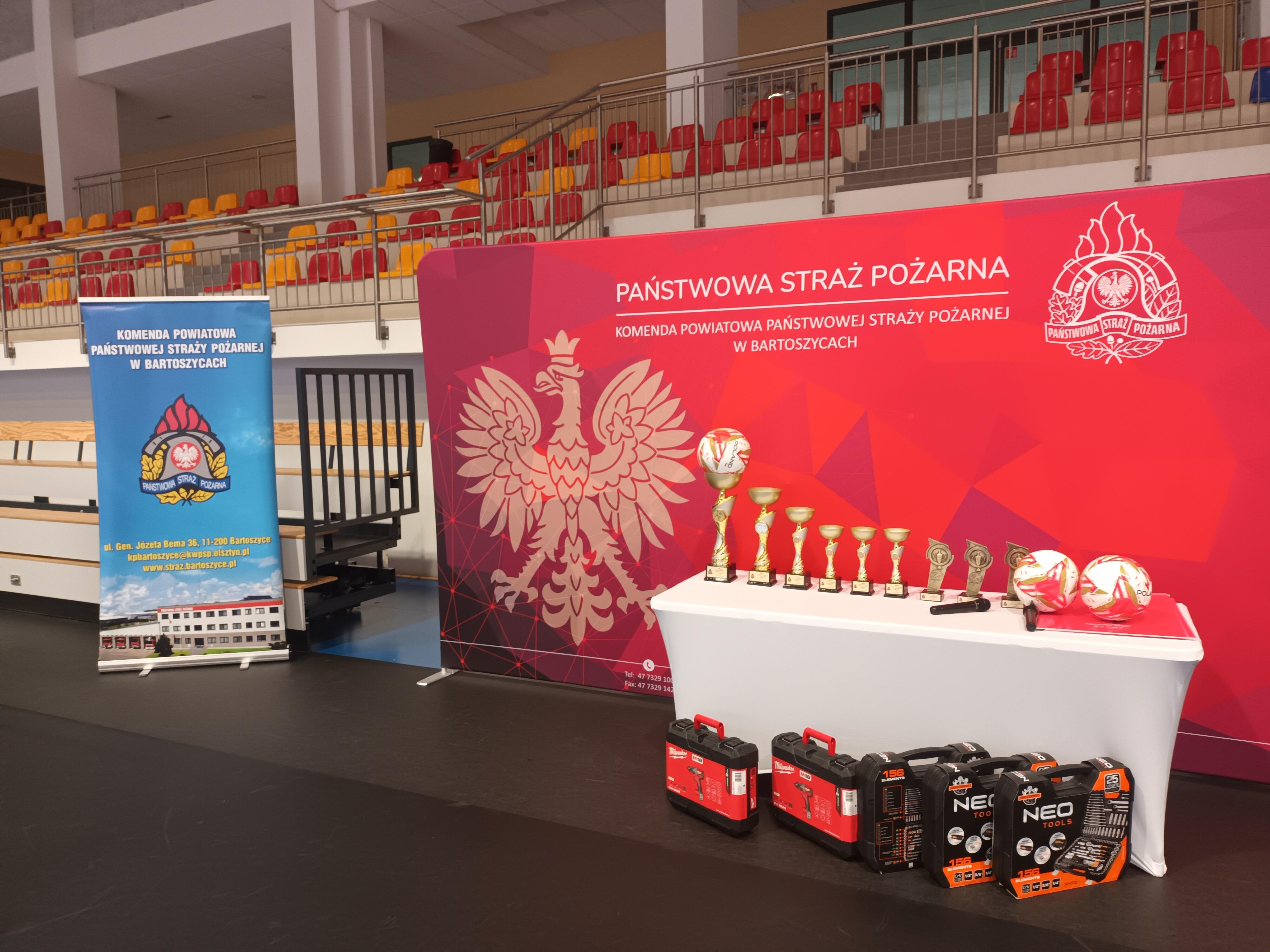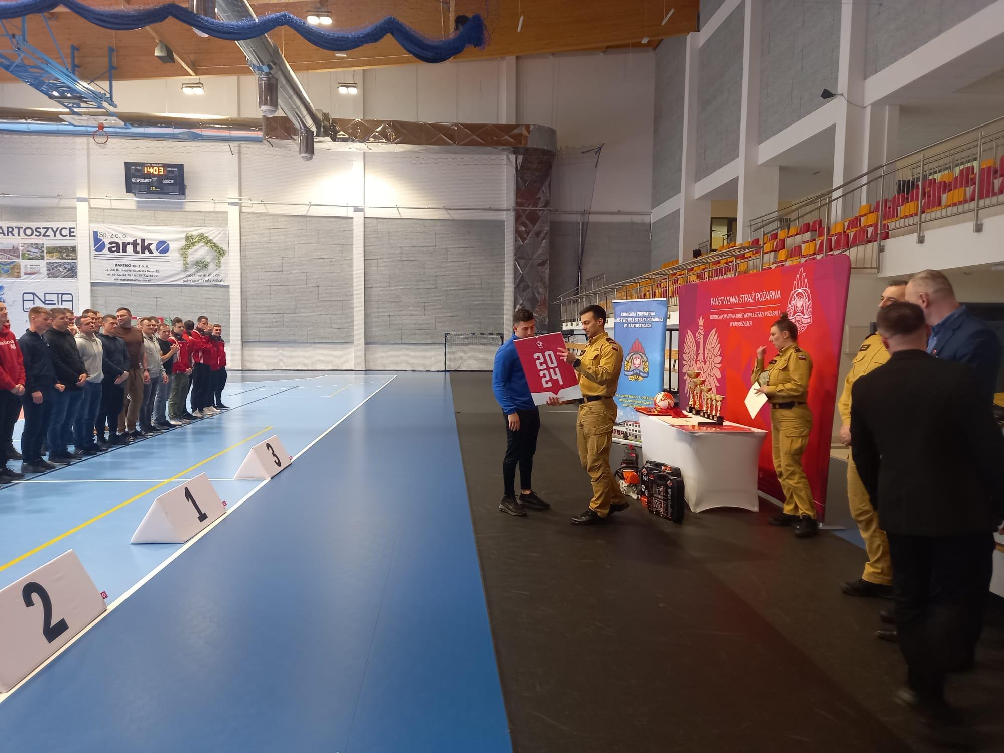 Dnia 16.04.2024r. w hali widowiskowo - sportowej przy ul. Słowackiego w Bartoszycach odbyły się finały 19 mistrzostw Województwa Warmińsko - Mazurskiego Strażaków PSP w piłce halowej.
