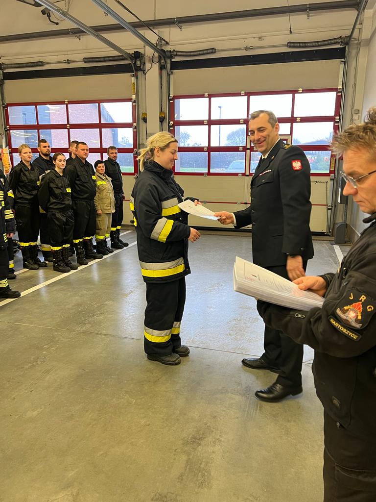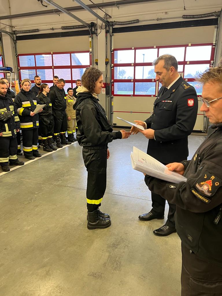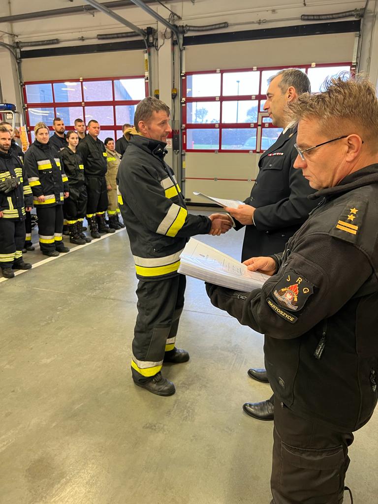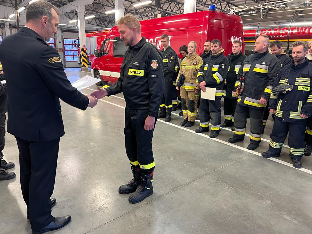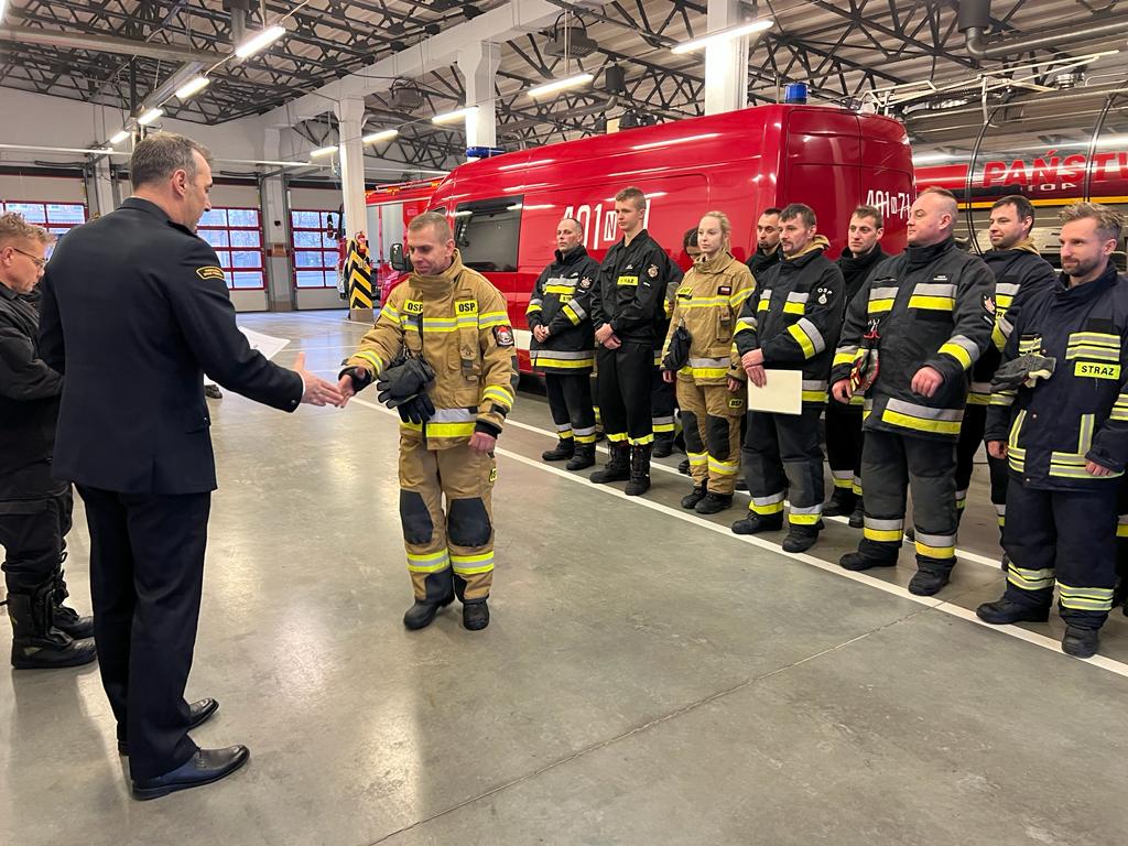 Świadectwa ukończenia kursu wręczył komendant powiatowy PSP w Bartoszycach st. bryg. Andrzej Harhaj, który pogratulował wszystkim absolwentom oraz podkreślił jak ważną rolę pełnią Ochotnicze Straże Pożarne w Krajowym Systemie Ratowniczo-Gaśniczym.