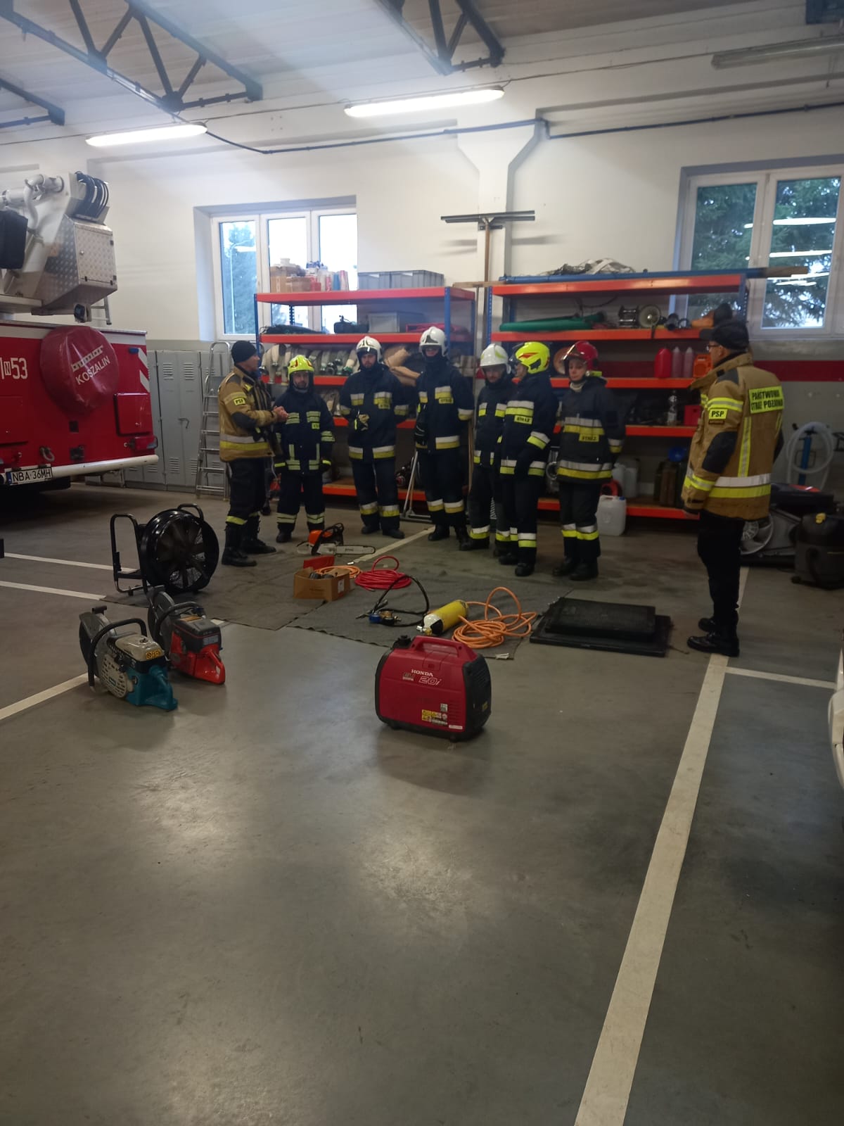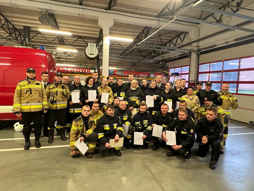W ramach szkolenia strażacy brali udział również w szkoleniu wstępnym i okresowym w zakresie bezpieczeństwa i higieny pracy, zaliczyli test w komorze dymowej przeprowadzony w Ośrodku Szkolenia Komendy Wojewódzkiej Państwowej Straży Pożarnej w Olsztynie oraz uczestniczyli w szkoleniu z zakresu współpracy z Lotniczym Pogotowiem Ratunkowych.