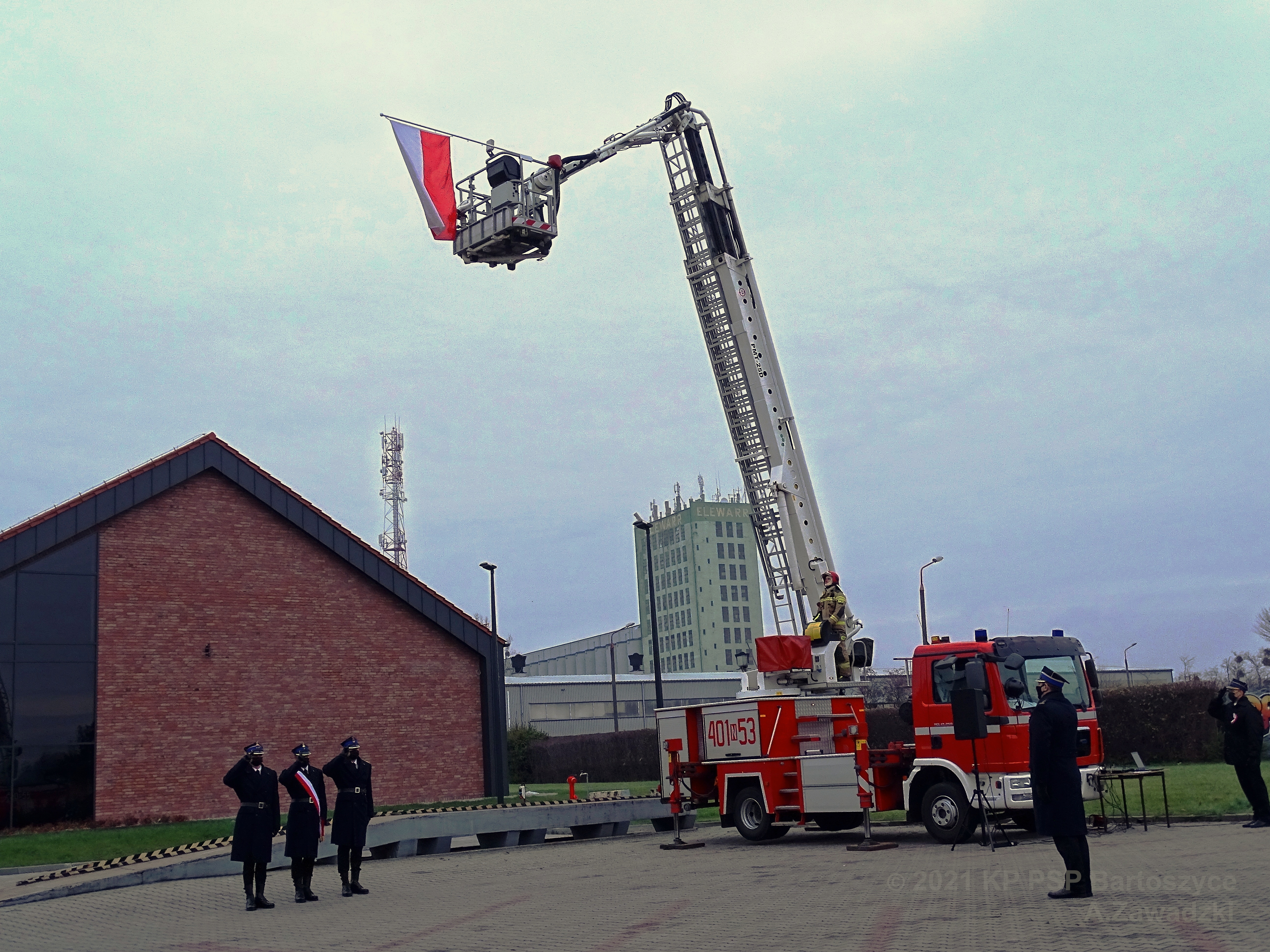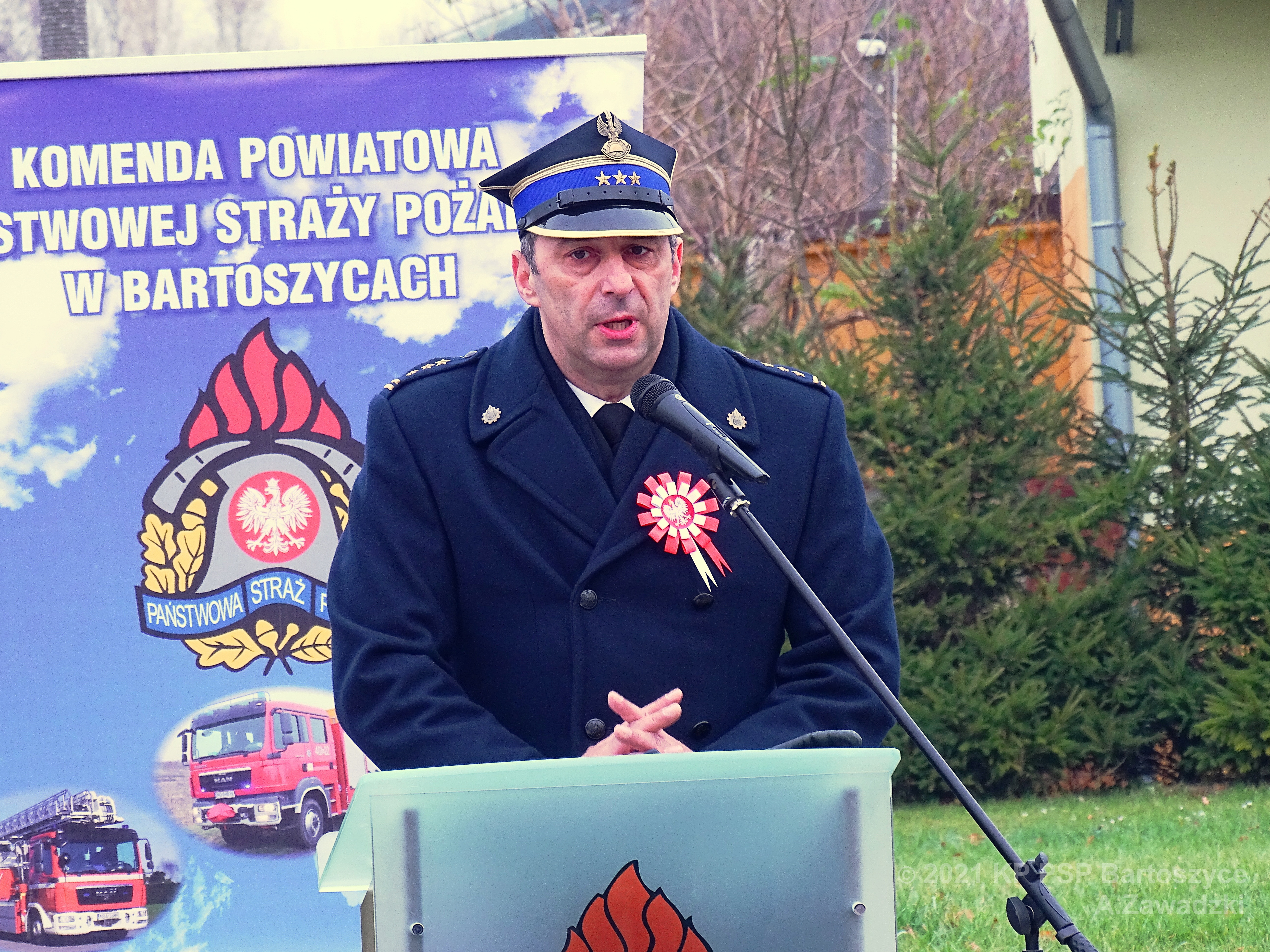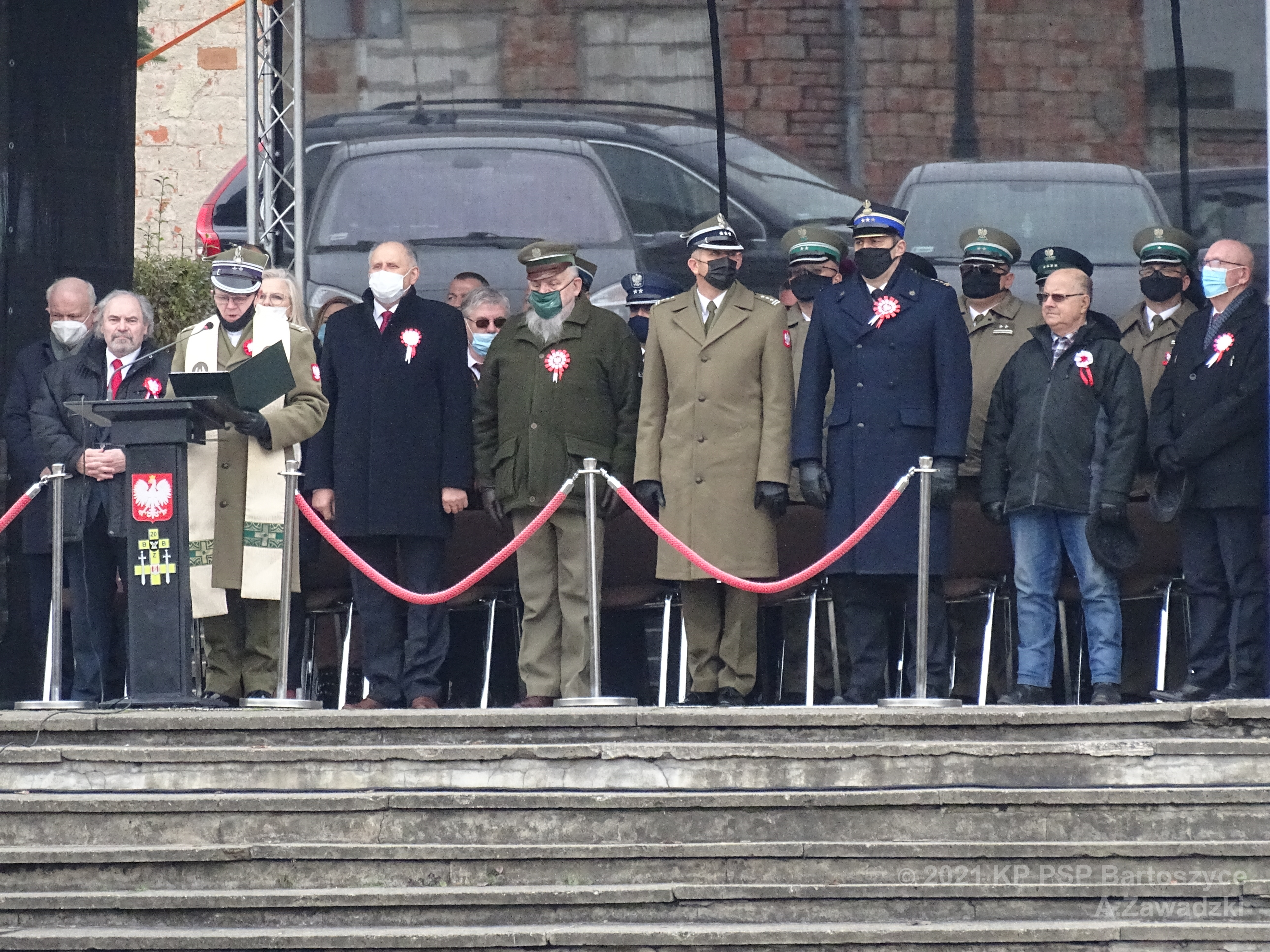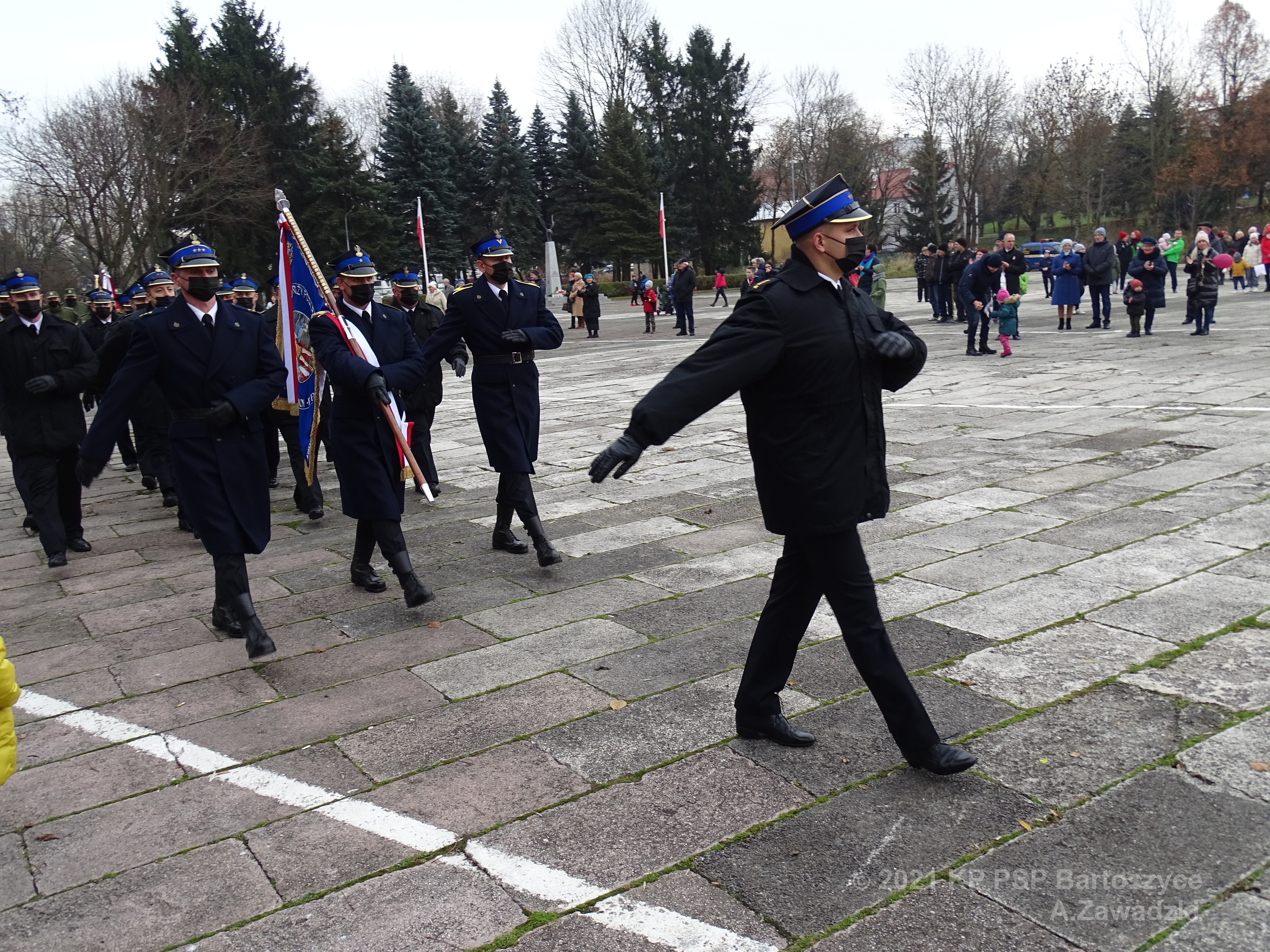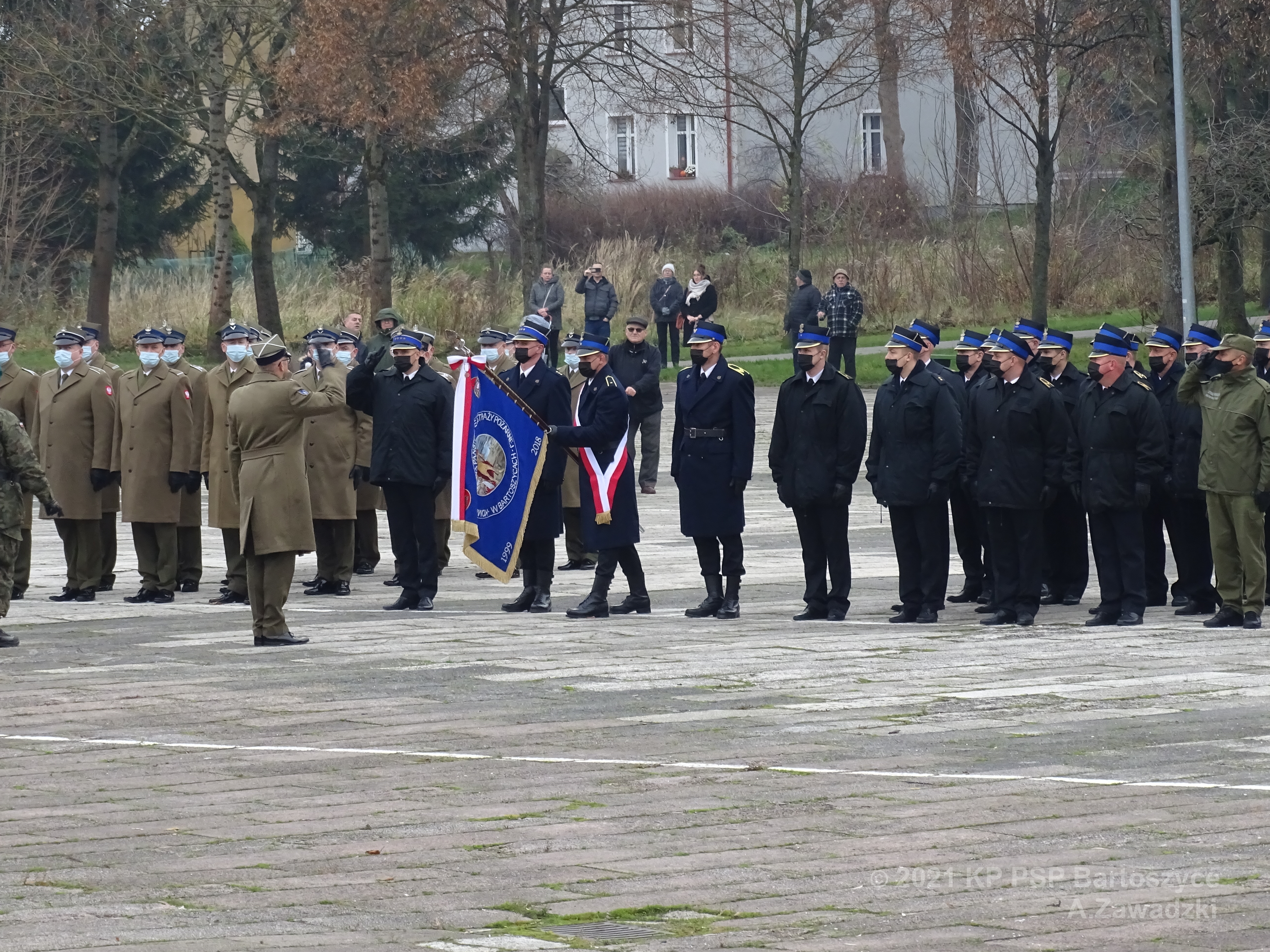Tegoroczne obchody Narodowego Święta Niepodległości rozpoczęły się o godzinie 12.00 na placu wewnętrznym Komendy Powiatowej PSP w Bartoszycach, gdzie przeprowadzona została uroczysta zbiórka. Podczas uroczystości wciągnieta została flaga na podnośnik, odśpiewany został hymn państwowy oraz wręczone zostały strażakom awanse na wyższe stopnie.