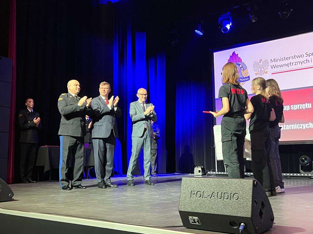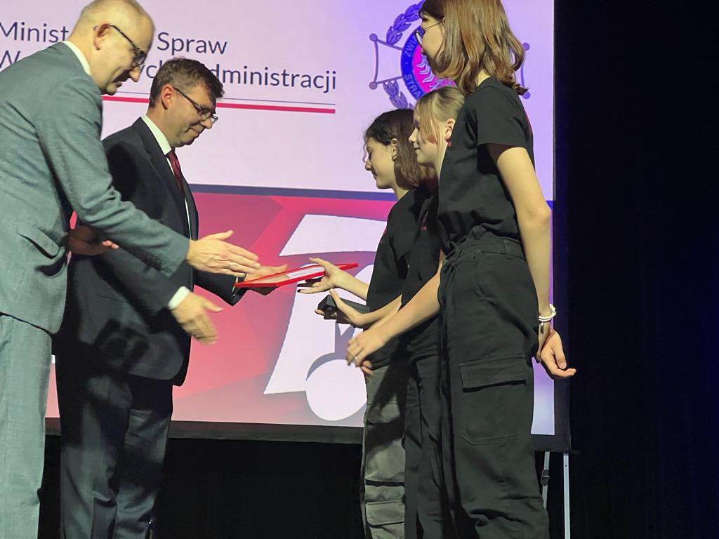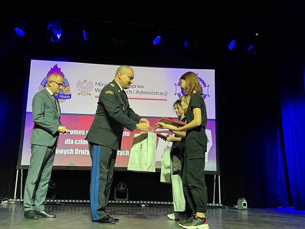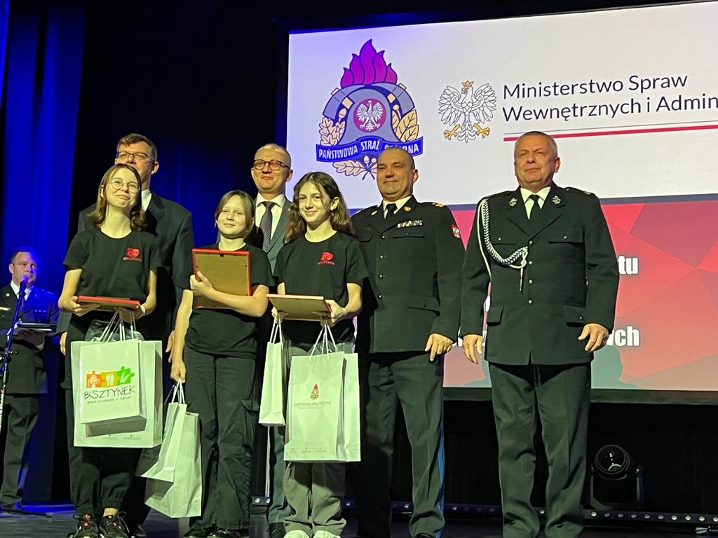 Oliwia Kaczmarczyk, Blanka Maruszewska i Wiktoria Wróbel z Młodzieżowej Drużyny Pożarniczej w Bisztynku otrzymały Odznaki Komendanta Głównego Państwowej Straży Pożarnej "Iuvenis Forti".
