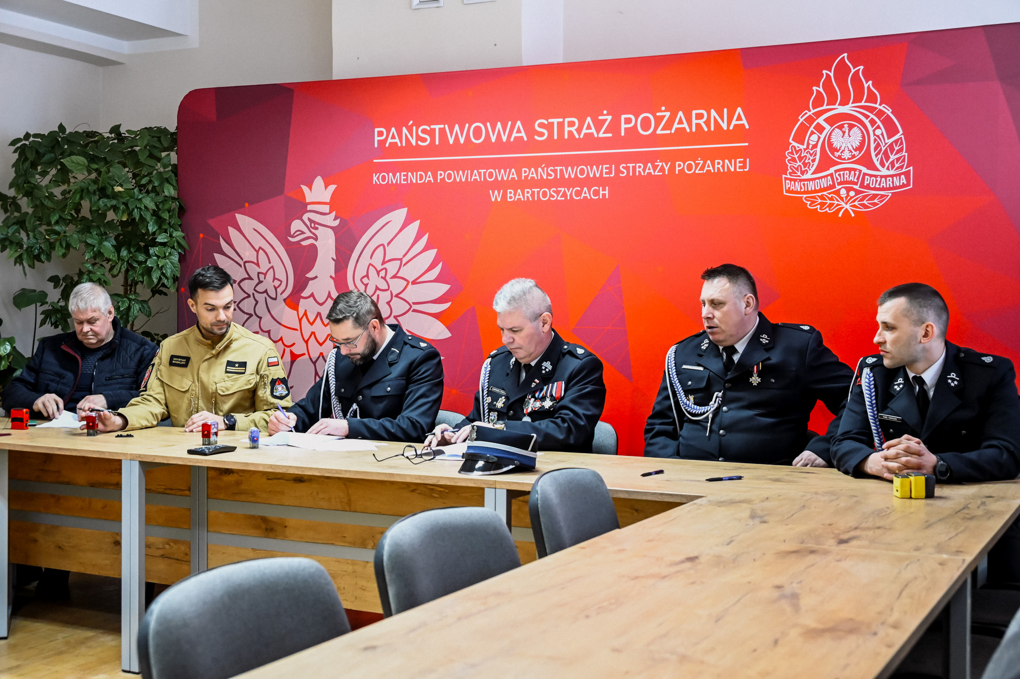 13 lutego 2026 r. w Komendzie Powiatowej Państwowej Straży Pożarnej w Bartoszycach podpisane zostały trójstronne porozumienia dotyczące włączenia jednostek OSP w Kandytach i OSP w Kinkajmach do Krajowego Systemu Ratowniczo-Gaśniczego.