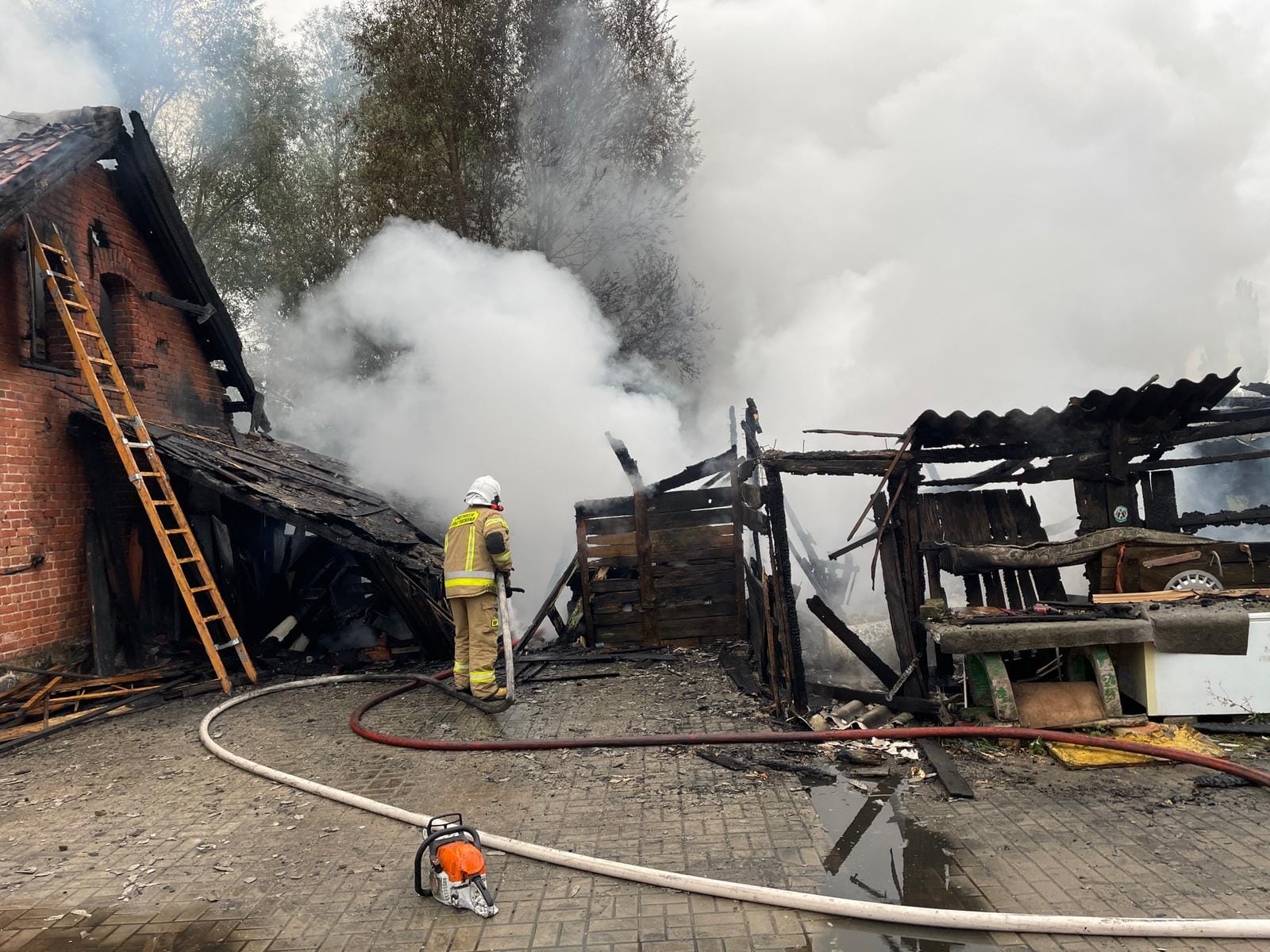 W chwili przybycia na miejsce pierwszych zastępów straży pożarnej okazało się, że pożarem objęta była szopa drewniana, a pożar rozprzestrzenił się na ścianę innej szopy oraz dach sąsiedniego budynku gospodarczego.