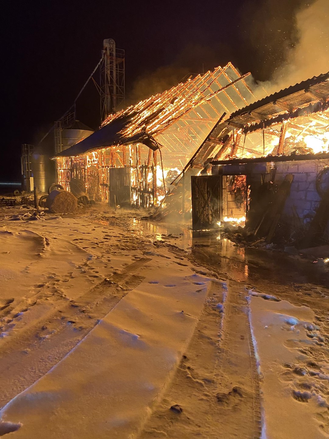 W chwili przybycia na miejsce pierwszych zastępów straży pożarnej budynek gospodarczy był całkowicie objęty ogniem, a budynki znajdujące się w jego bezpośrednim sąsiedztwie były zagrożone rozprzestrzenieniem się pożaru.