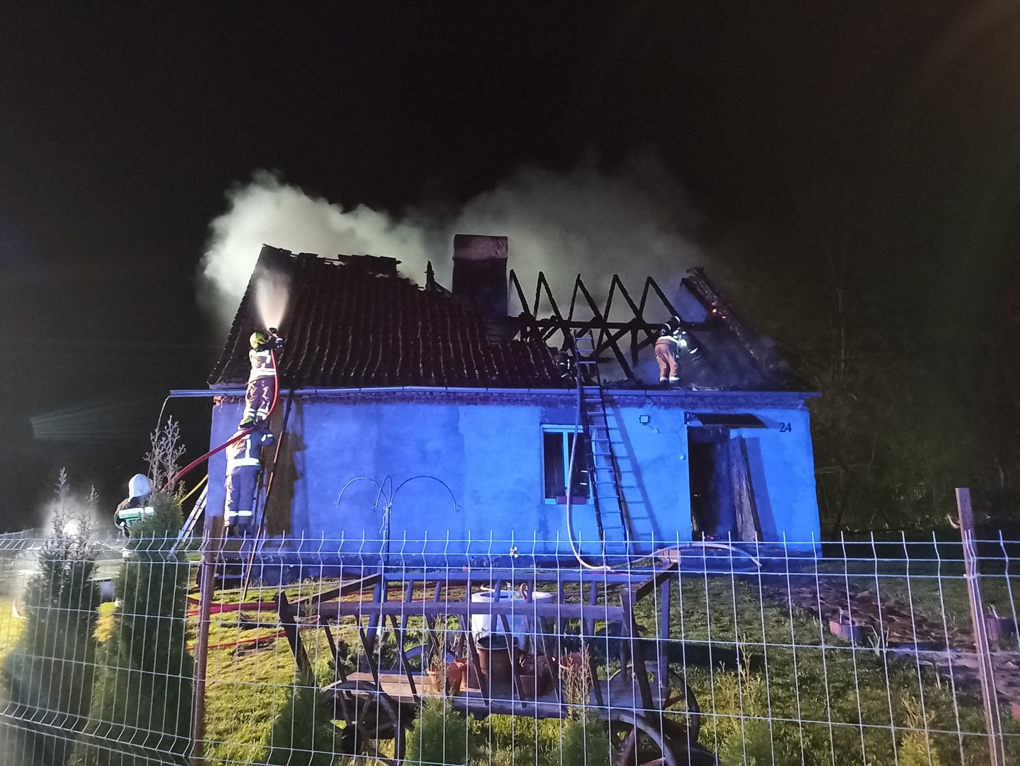 W wyniku pożaru spaleniu ulegała konstrukcja dachu, część stropu oraz wyposażenie domu.