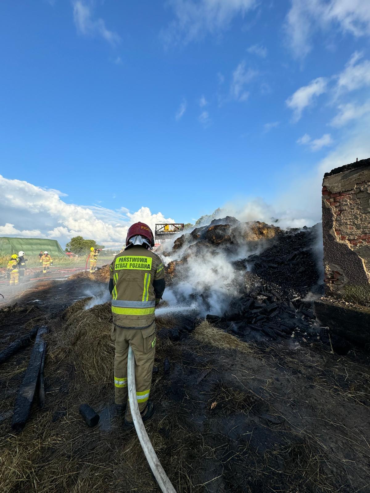 W kolejnym etapie akcji gaśniczej strażacy przeprowadzili prace rozbiórkowe nadpalonych elementów konstrukcyjnych budynków oraz dogaszali wywożone na zewnątrz drewno opałowe i baloty siana.
