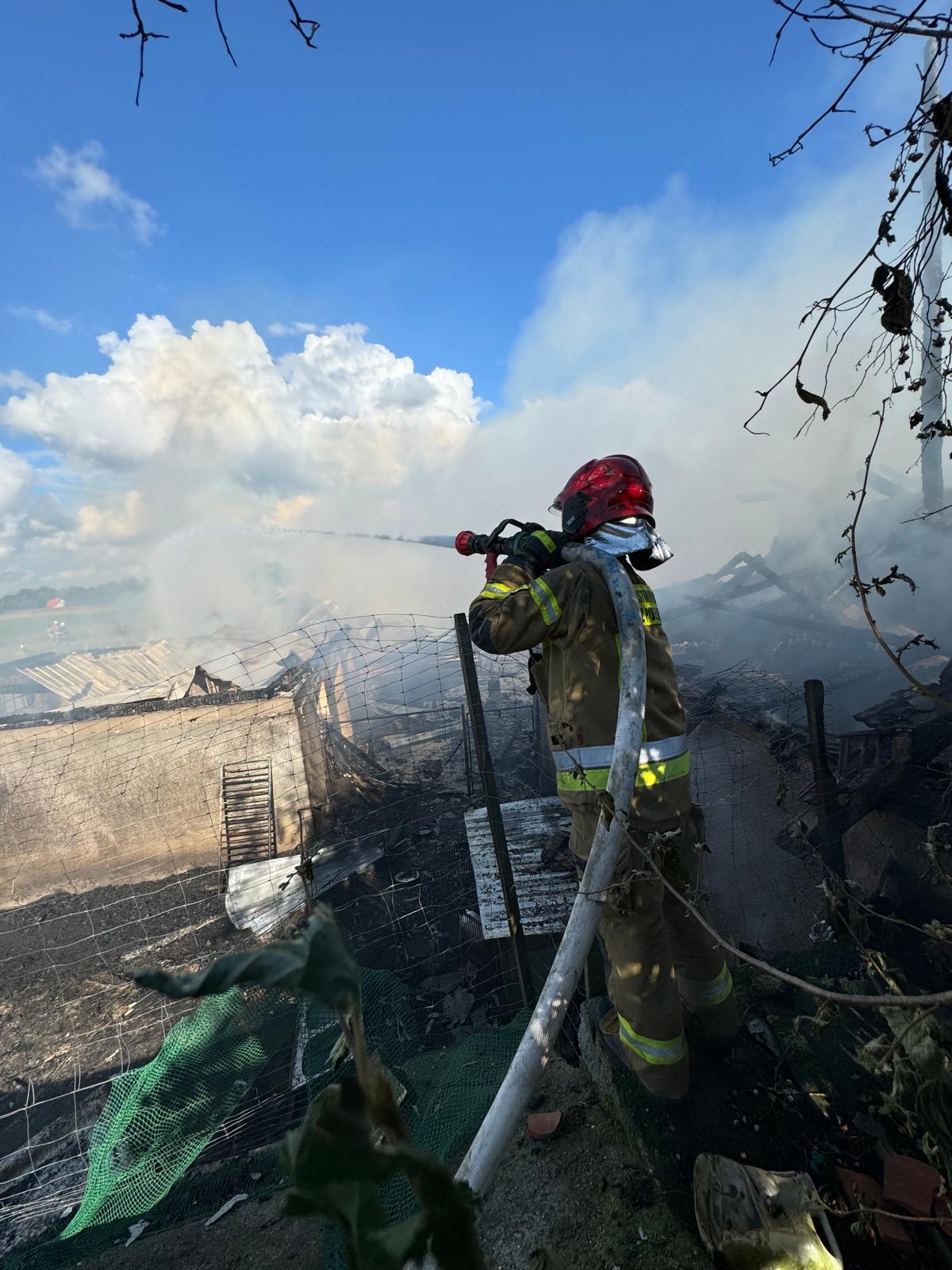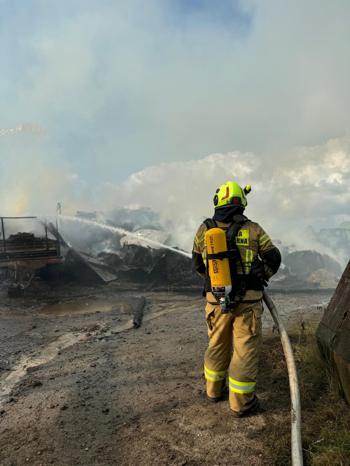 Pożar na terenie gospodarstwa rolnego w Wojmianach