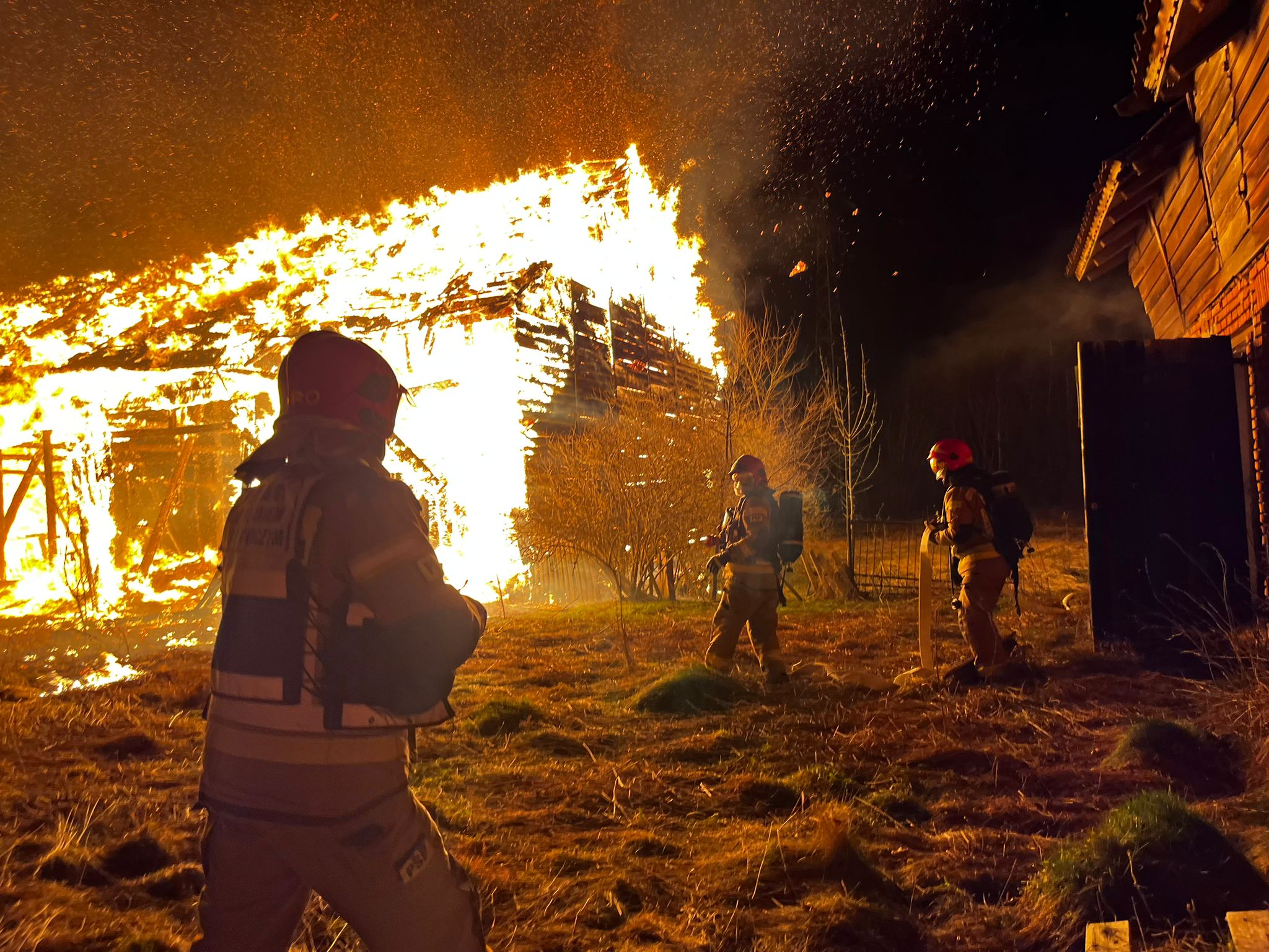 Na miejscu zdarzenia okazało się, że pożarem objęta była cała stodoła, a zagrożone były znajdujące się w pobliżu budynek mieszkalny i obora.