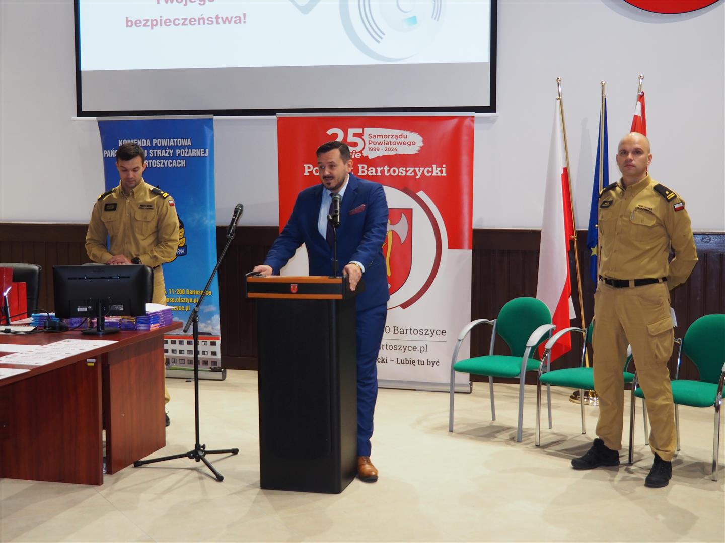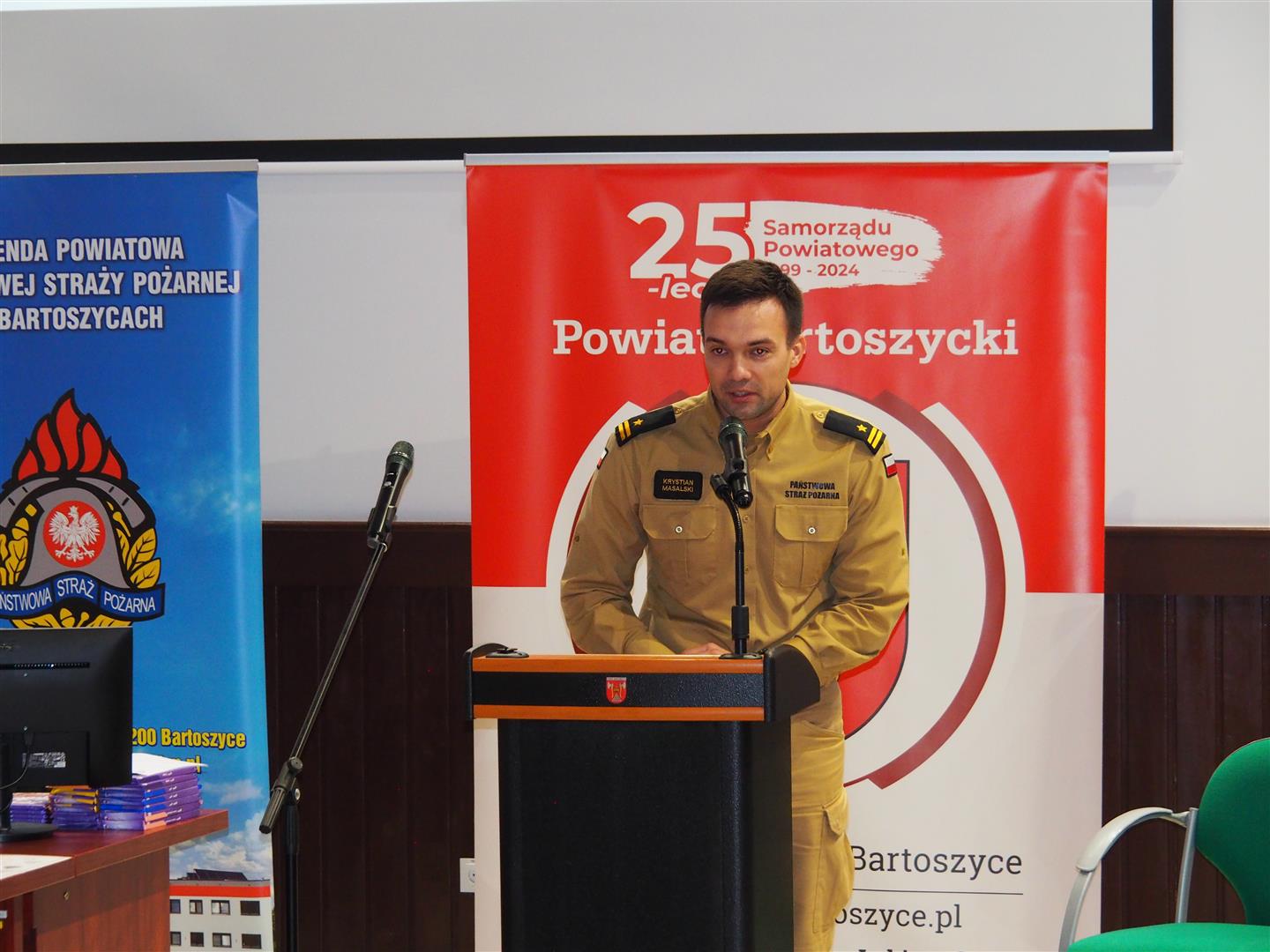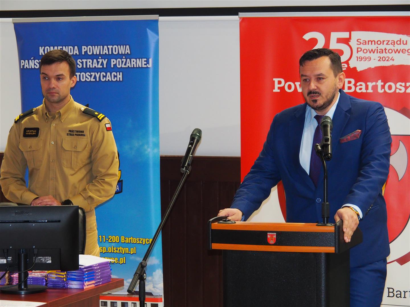 Wręczenia dyplomów i nagród dokonali Komendant Powiatowy PSP w Bartoszycach mł. bryg. Krystian Masalski oraz Wicestarosta Powiatu Bartoszyckiego Paweł Wójcik.
