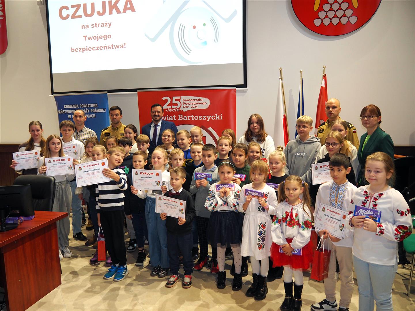 15 listopada 2024 r. w sali sesyjnej Starostwa Powiatowego w Bartoszycach odbyło się rozstrzygnięcie konkursu plastycznego „CZUJKA na straży Twojego bezpieczeństwa”.