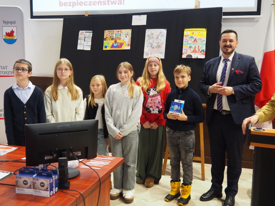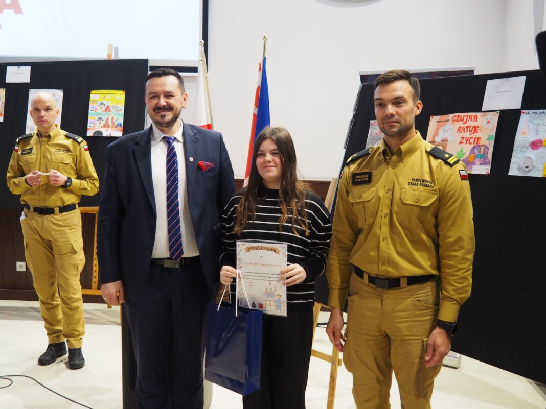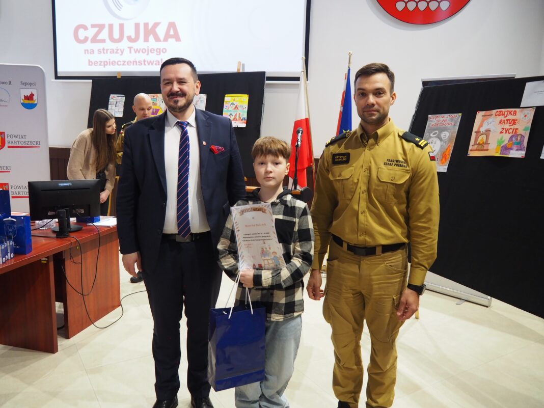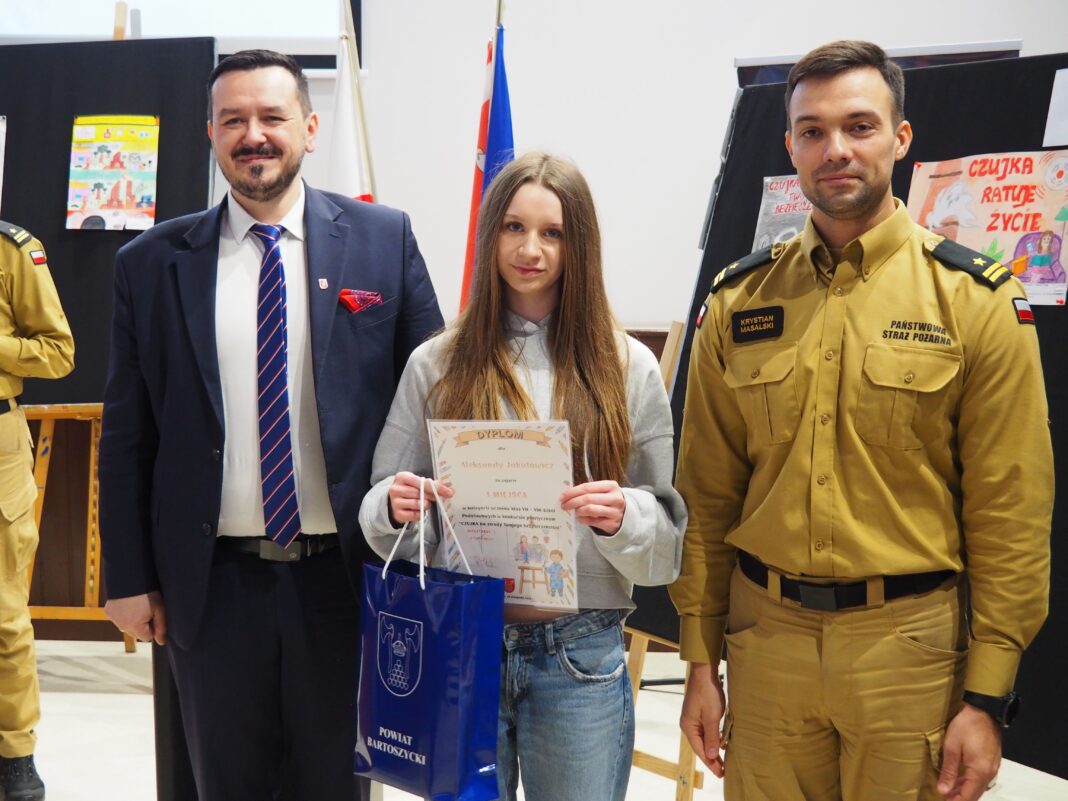 Uczestnicy konkursu otrzymali dyplomy i nagrody rzeczowe, w tym czujki dymu i tlenku węgla, ufundowane przez Starostwo Powiatowe w Bartoszycach.