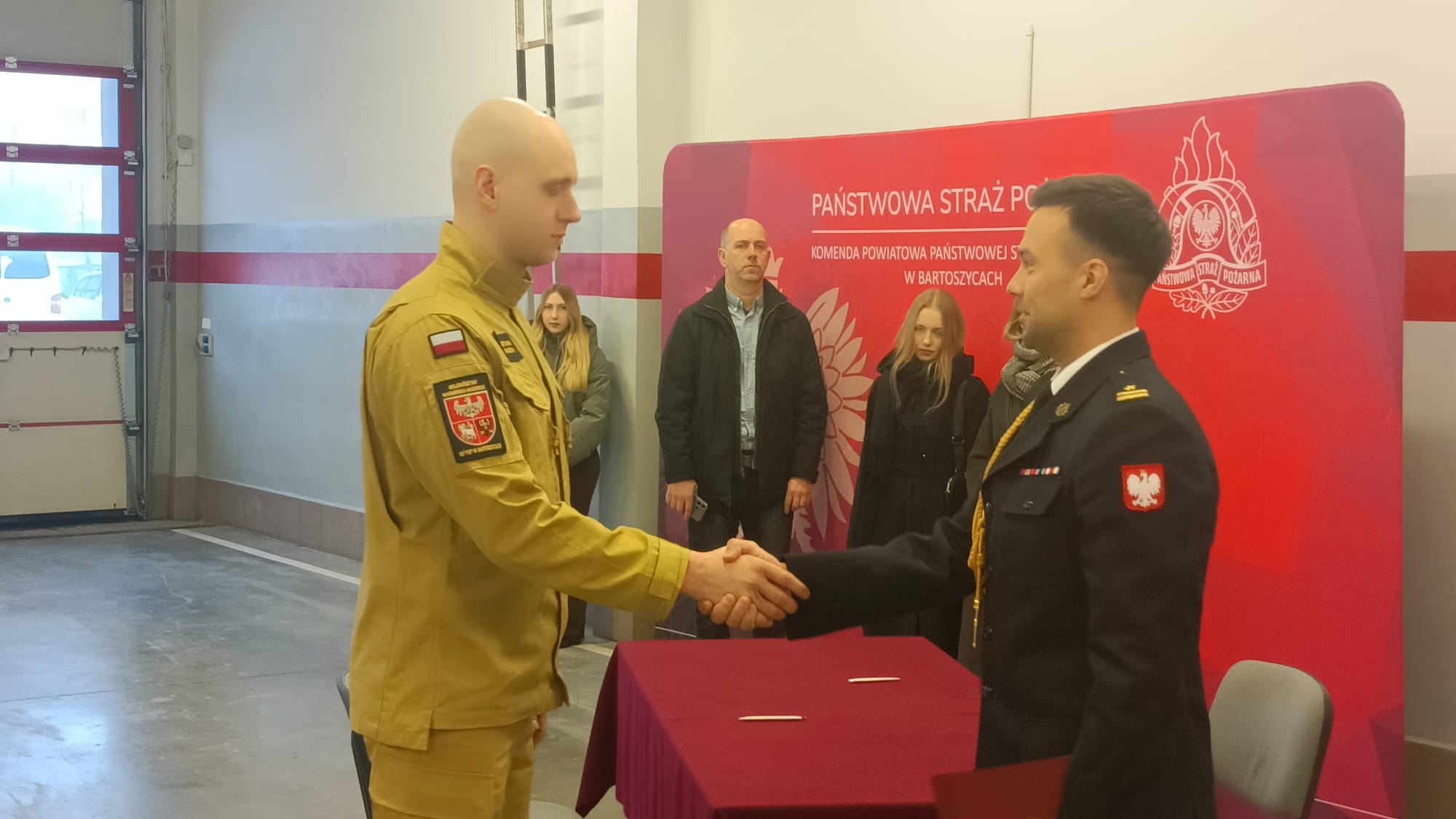 Ślubowanie przyjął Komendant Powiatowy PSP w Bartoszycach mł. bryg. Krystian Masalski, który powitał nowego funkcjonariusza w szeregach Państwowej Straży Pożarnej.