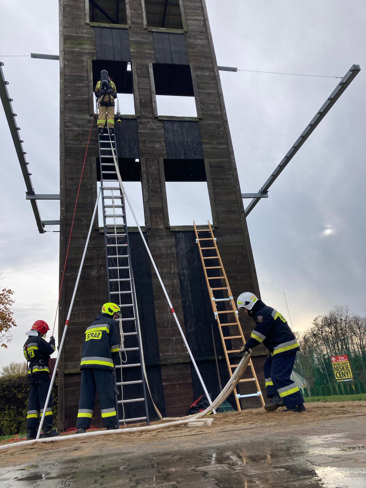 Poza tym, strażacy uczestniczący w szkoleniu przeszli test w komorze dymowej w Ośrodku Szkolenia Komendy Wojewódzkiej PSP w Olsztynie, przygotowujące oraz sprawdzające umiejętności ratowników podczas prowadzenia działań ratowniczo-gaśniczych w sprzęcie ochrony układu oddechowego. Egzamin kończący szkolenie, składający się z części teoretycznej oraz praktycznej zdało 28 druhów, w tym 9 kobiet.