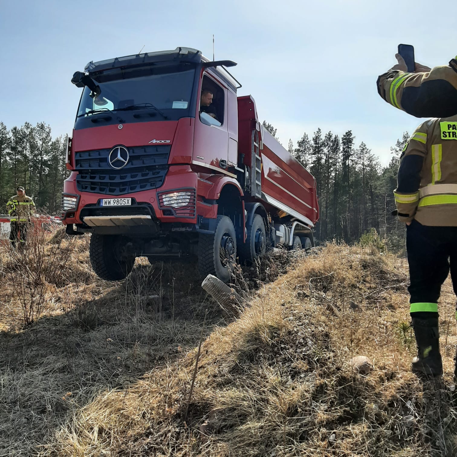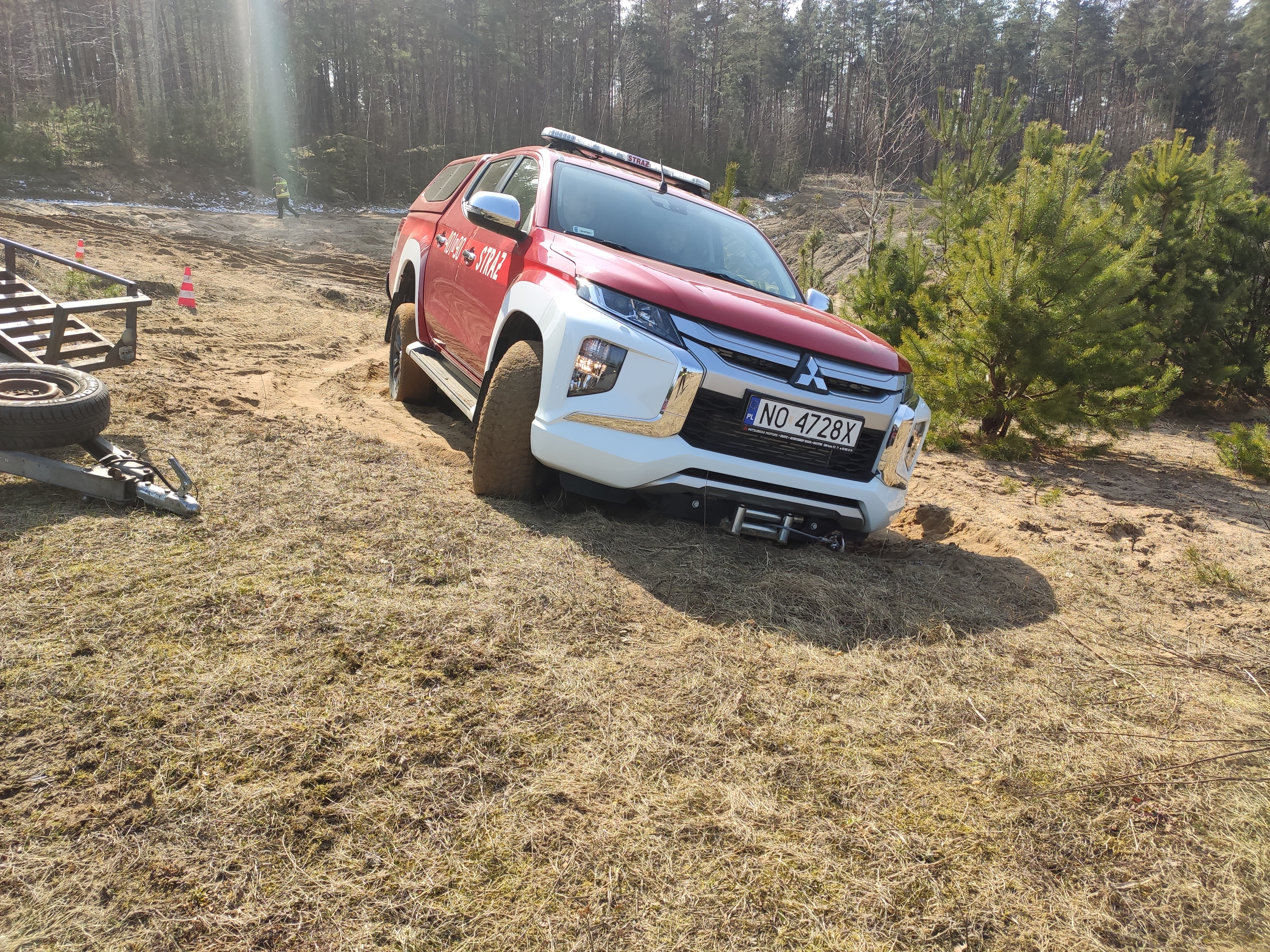 31 marca strażacy Państwowej Straży Pożarnej oraz Wojskowej Ochrony Przeciwpożarowej doskonalili umiejętności poruszania się pojazdami w trudnym terenie.