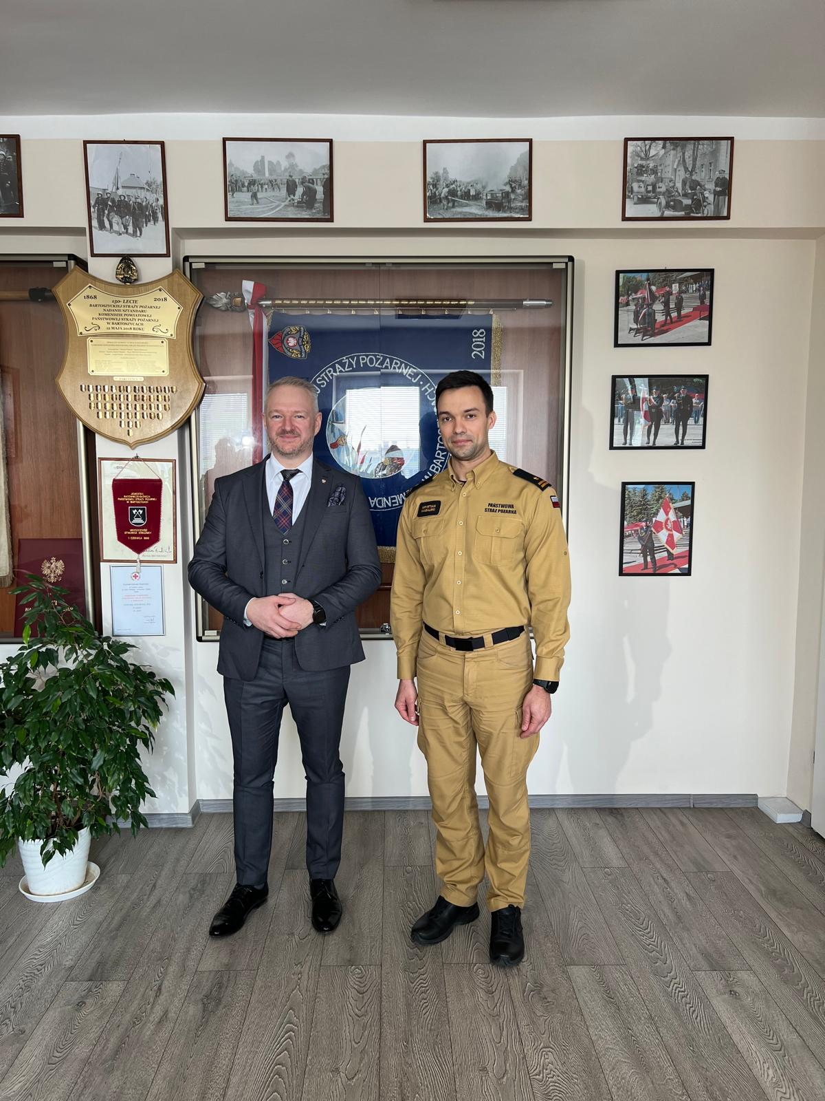 14 marca 2024 roku Wojewoda Warmińsko - Mazurski Radosław Król odwiedził strażaków pełniących służbę w Komendzie Powiatowej PSP w Bartoszycach.