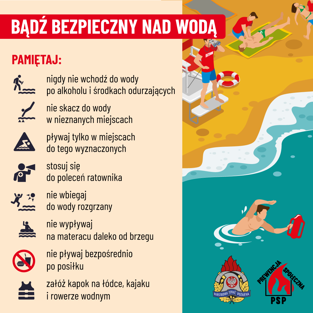 Wypoczynek pod okiem ratownika nie zwalnia z zachowania zdrowego rozsądku i zapewnienia należytej opieki dzieciom. Pływanie po alkoholu, brawura, przecenianie swoich umiejętności, pozostawianie dzieci bez nadzoru opieki oraz skoki do wody „na główkę” są najczęstszymi przyczynami utonięć.
