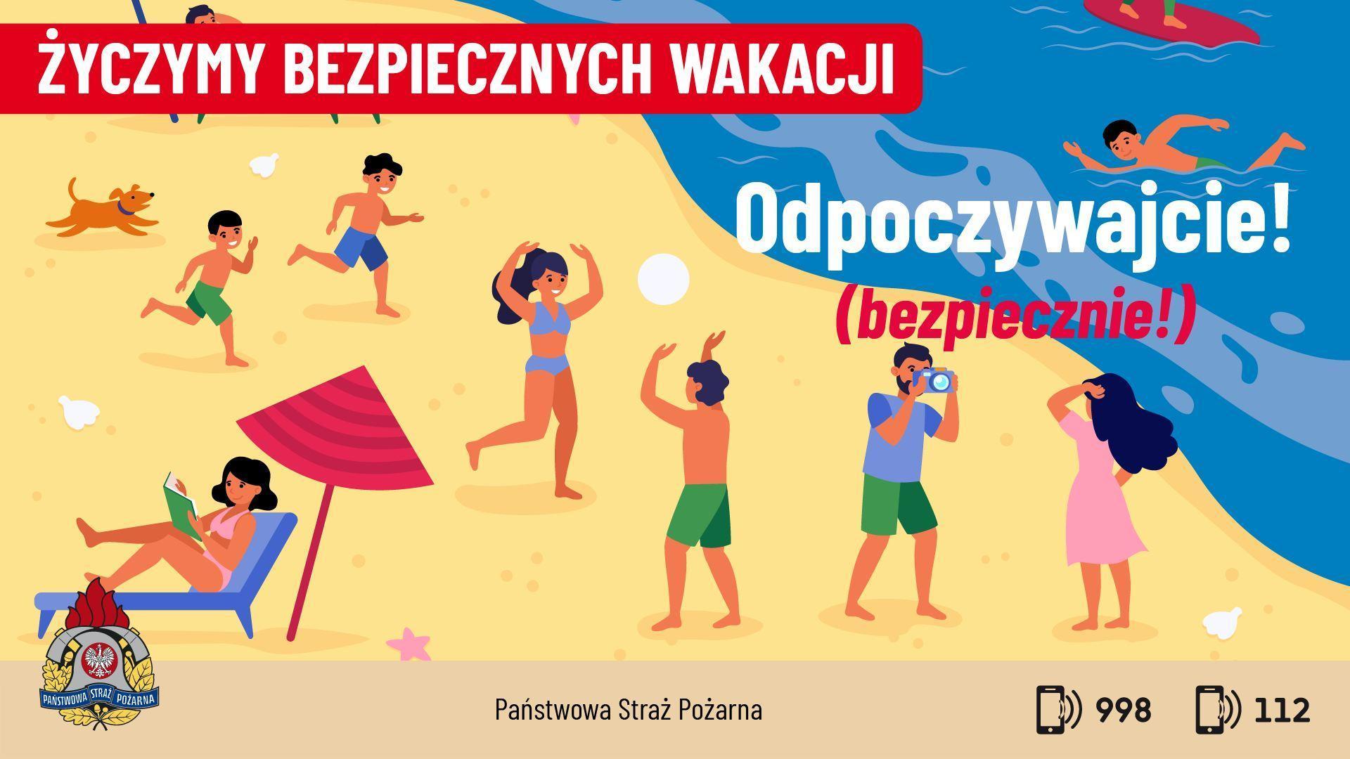 Wakacje to czas odpoczynku, relaksu i zabawy. Pamiętajmy, że to przede wszystkim od nas zależy, czy będą one bezpieczne, a tym samym udane. Dlatego niezależnie od miejsca, w którym je spędzamy, zachowujmy się odpowiedzialnie, pamiętając o podstawowych zasadach bezpieczeństwa.