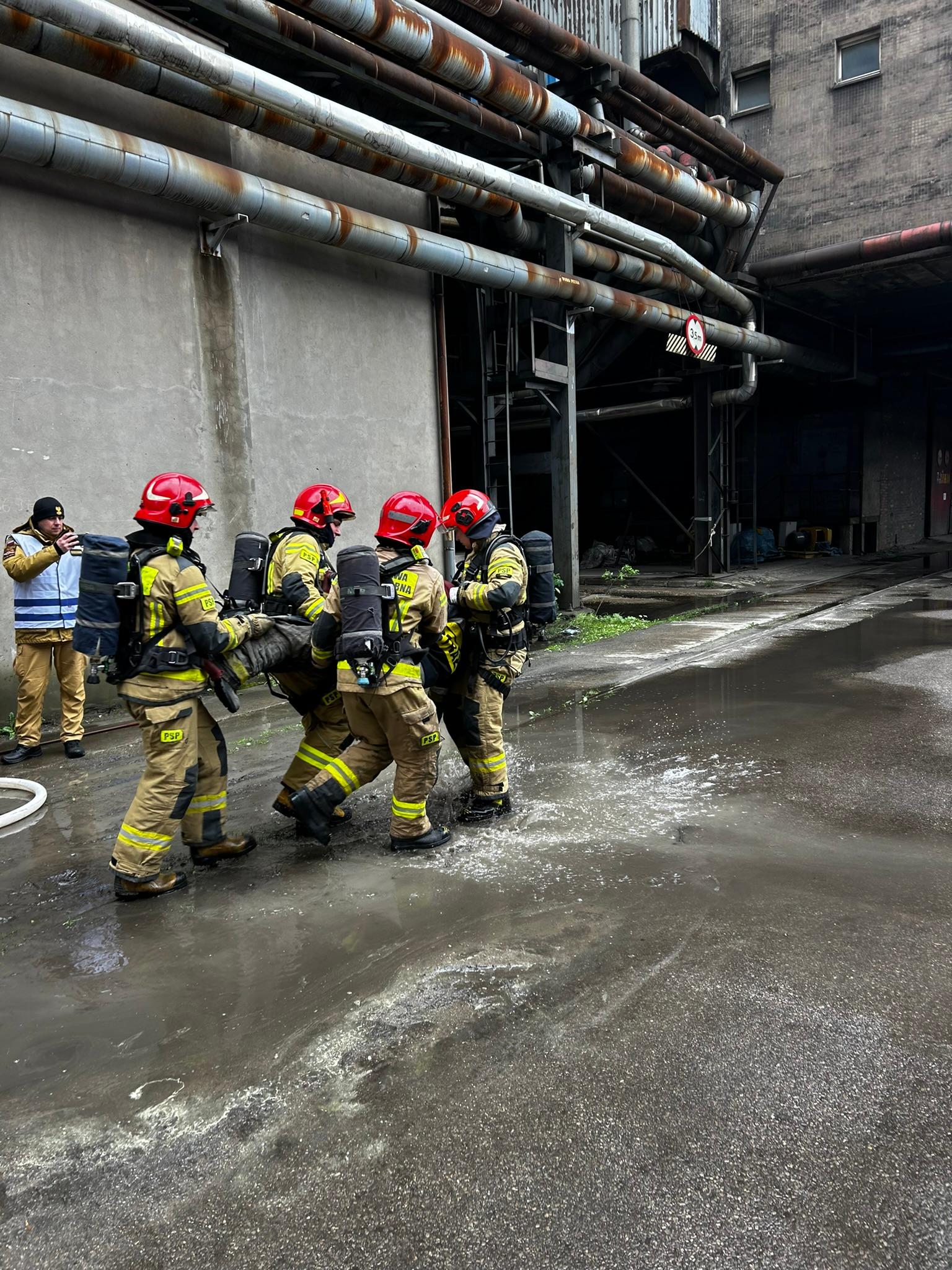 o szczególnym przeznaczeniu, a także operacyjnie zweryfikować gotowość pracowników zakładu do działań podejmowanych na wypadek wystąpienia zagrożenia. Na miejscu ćwiczyli funkcjonariusze zmiany służbowej wraz z dowództwem JRG Będzin oraz funkcjonariuszami systemu codziennego.