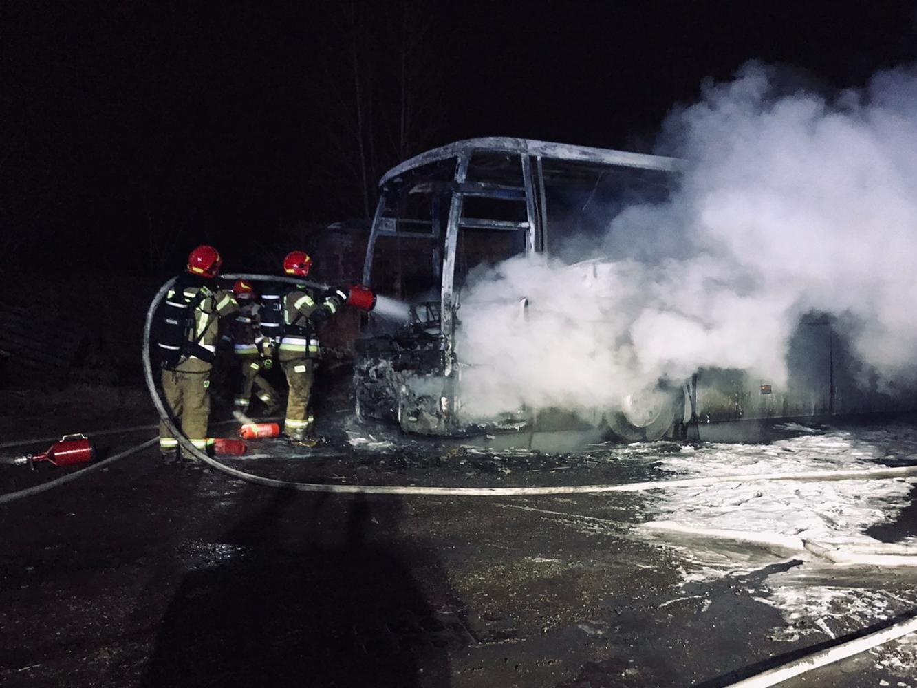 Stanowisko Kierowania przyjęło zgłoszenie z informacją o pożarze autobusu na terenie zajezdni.